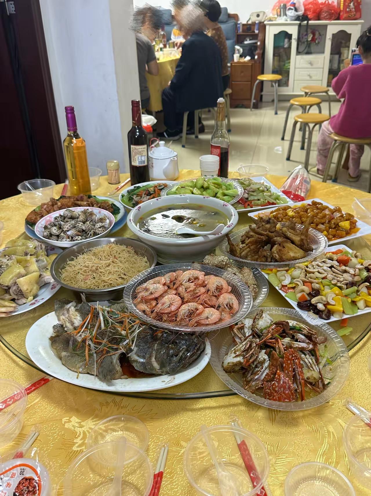 和朋友出外吃饭。 朋友点了这么一桌子菜,花费应该不会少吧? 虽然是在大排档,估摸也要三四百元了。 鱼虾蟹俱全,还有鸡,螺什么的。四个人,足可以饱餐一顿。 在港城,就是能吃上新鲜的地道菜,虽说不上是大餐,可也令人食指大动。