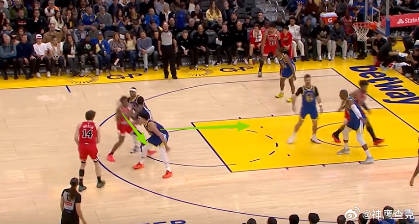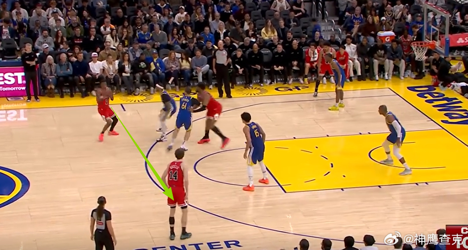 6789 10迪林汉姆左翼持球与亚布塞莱发动挡拆配合,被勇士换防破解后立即出球给弱侧接应的布泽利斯,随后迅速上前与其发动挡拆配合迅速Slip拆走衔接第二波进攻,布泽利斯接球见对位人后撤,立即借助已有投篮空间拔起出手三分,手起刀落。