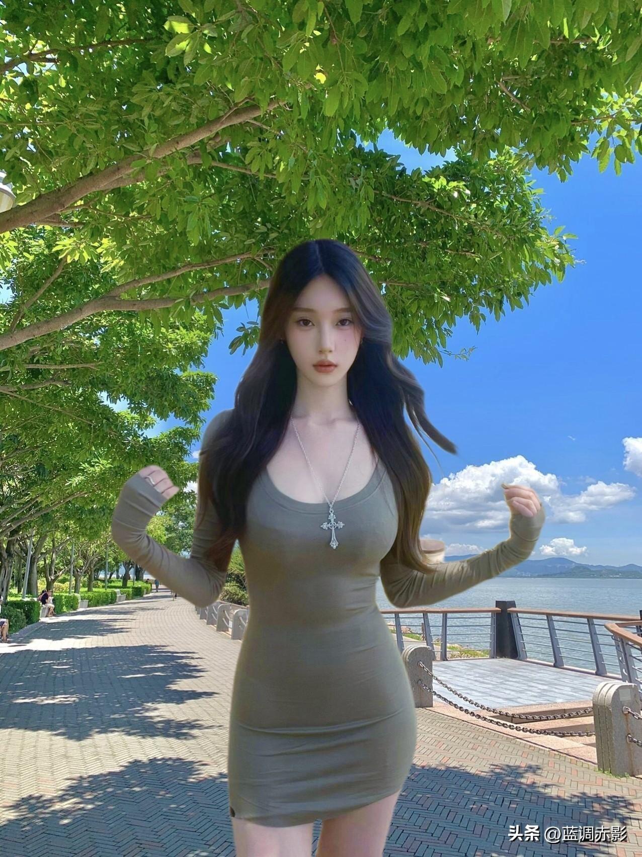 夏日清新穿搭,绿意盎然的海边漫步