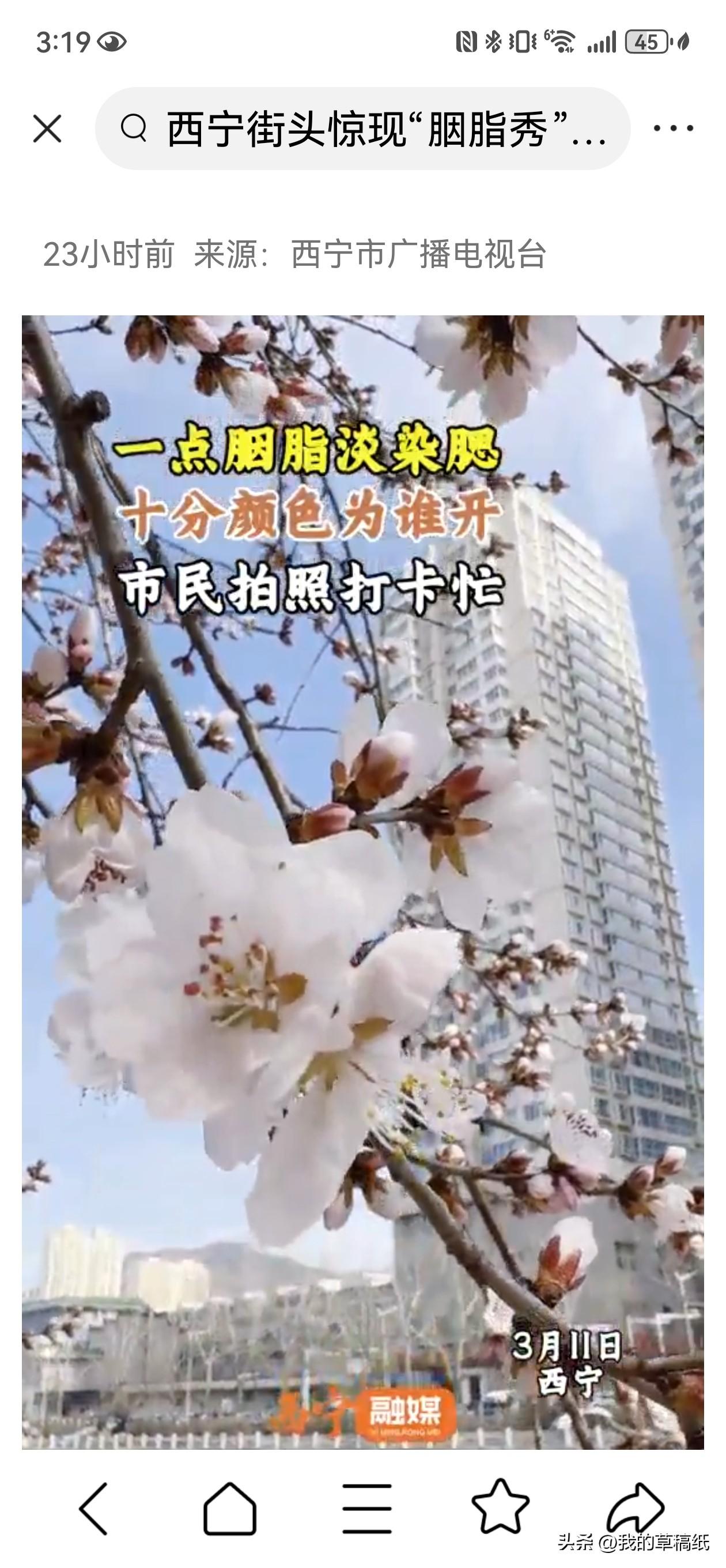西宁这树花,把全城的人都“逼”出来了! 挤不进去,根本挤不进去! 在人民公园,看见一树花。真的就一树。粉粉的,淡淡的,像谁拿胭脂随便点了几下。 结果你猜怎么着? 树下围着的大叔扛着长枪短炮,姑娘举着手机,还有个大妈直接带了丝巾来——红的!往树下一站,那叫一个鲜艳 这花也太霸道了吧?满城那么多花你不开,非要自己偷偷开这么好看。害得全城的人都跑出来,就为了给你拍张照。 哎,我就想问问,今天有多少西宁人被这棵树“骗”出门了?举手让我看看! 西宁风景随手拍