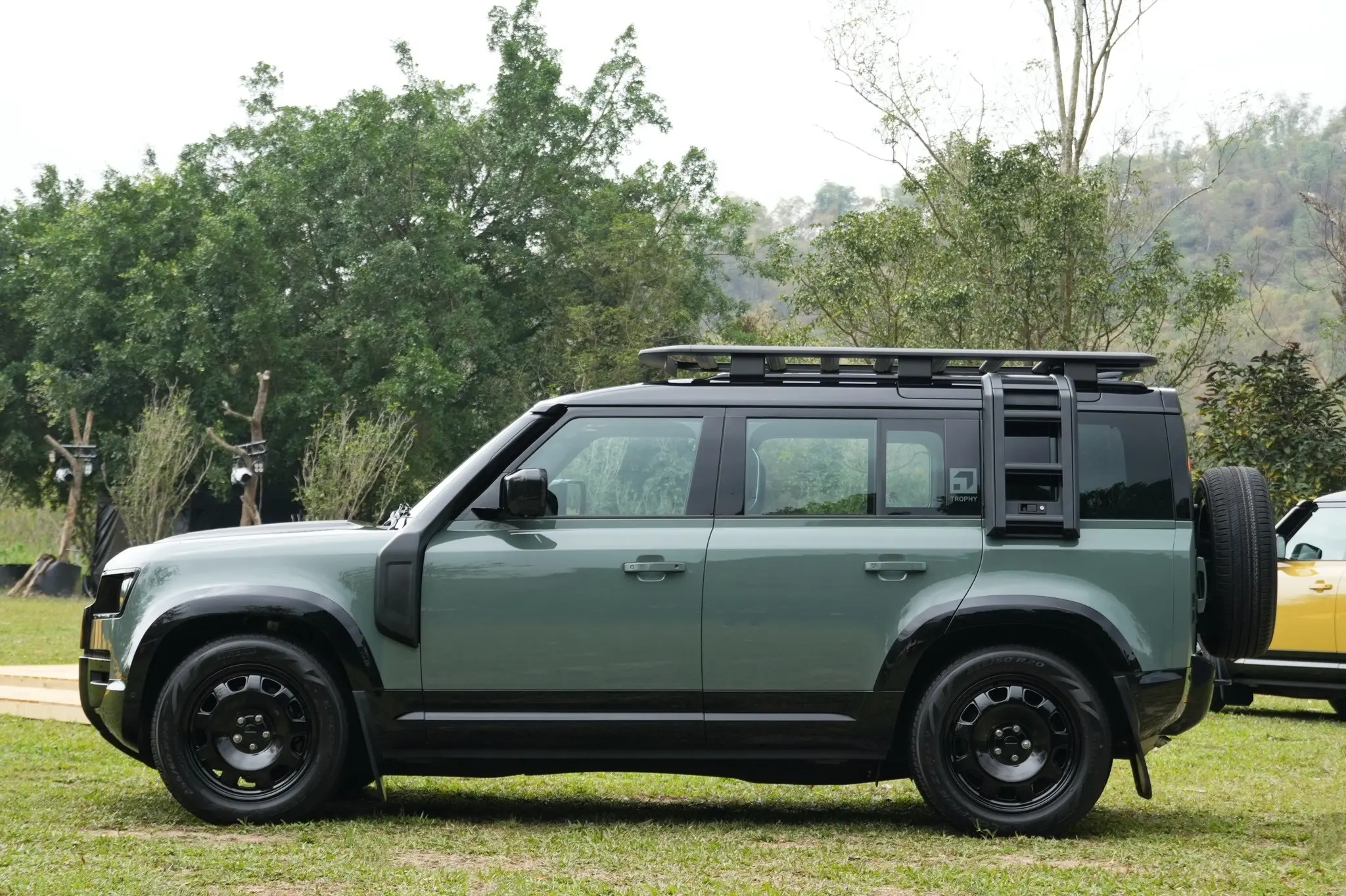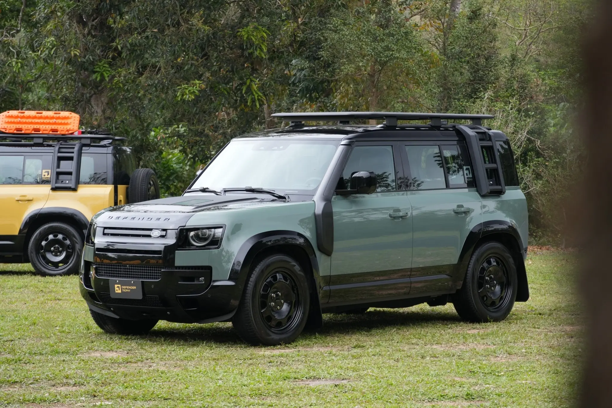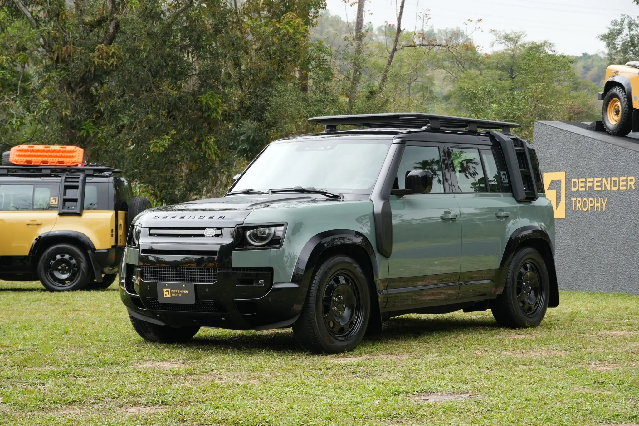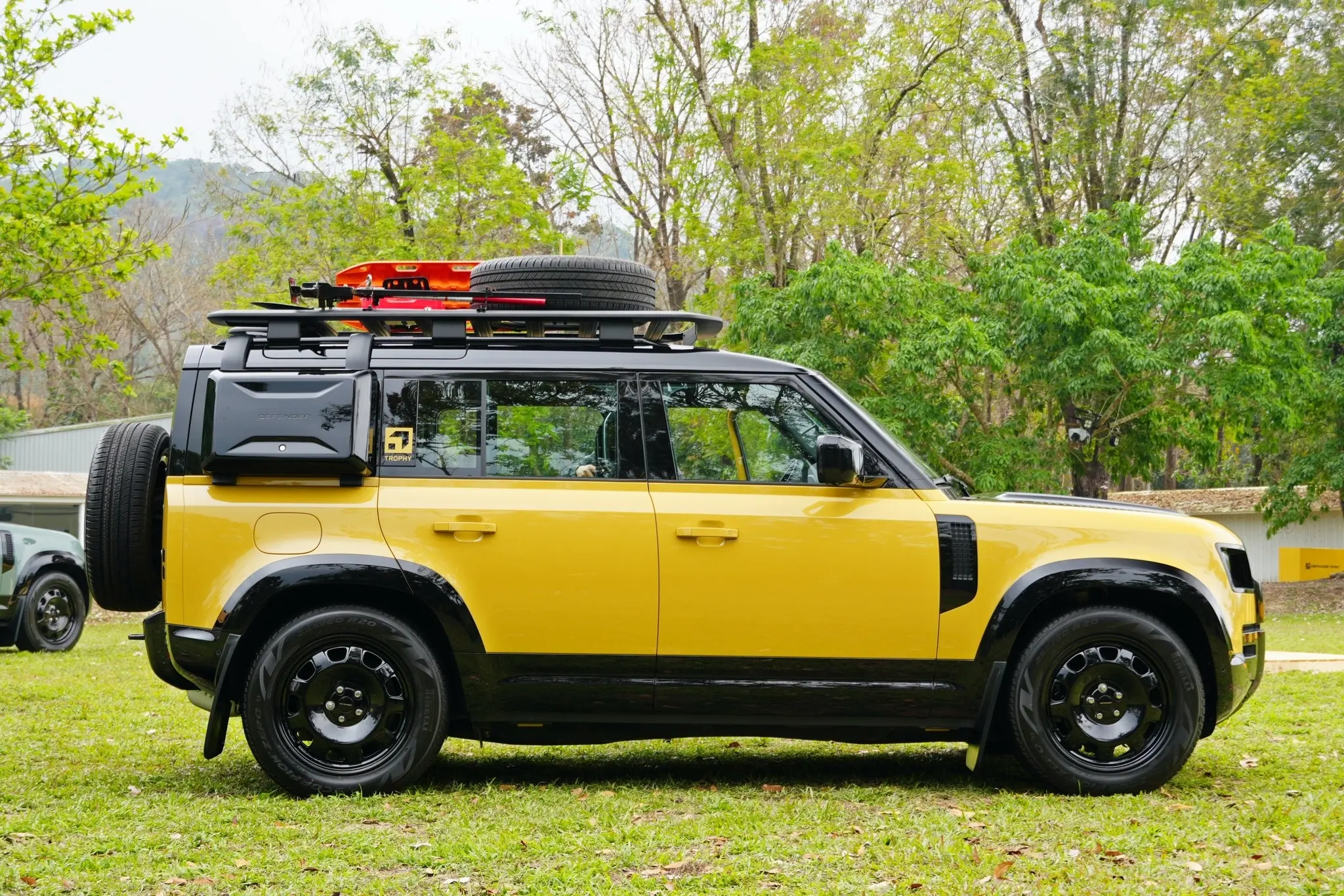 卫士牌越野车。Defender Trophy Edition路虎汽车 (Deep Sandglow Yellow) (Keswick Green)