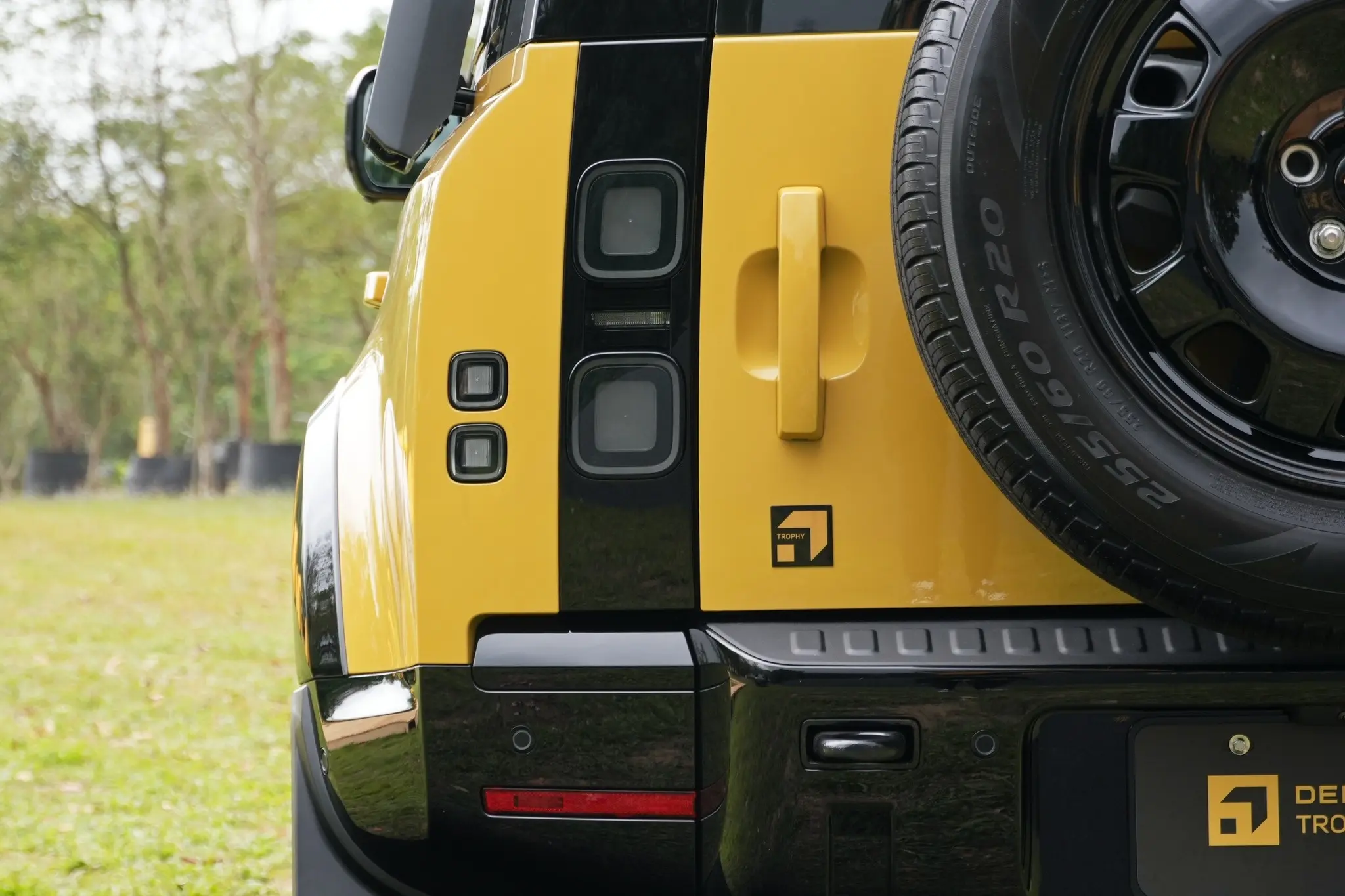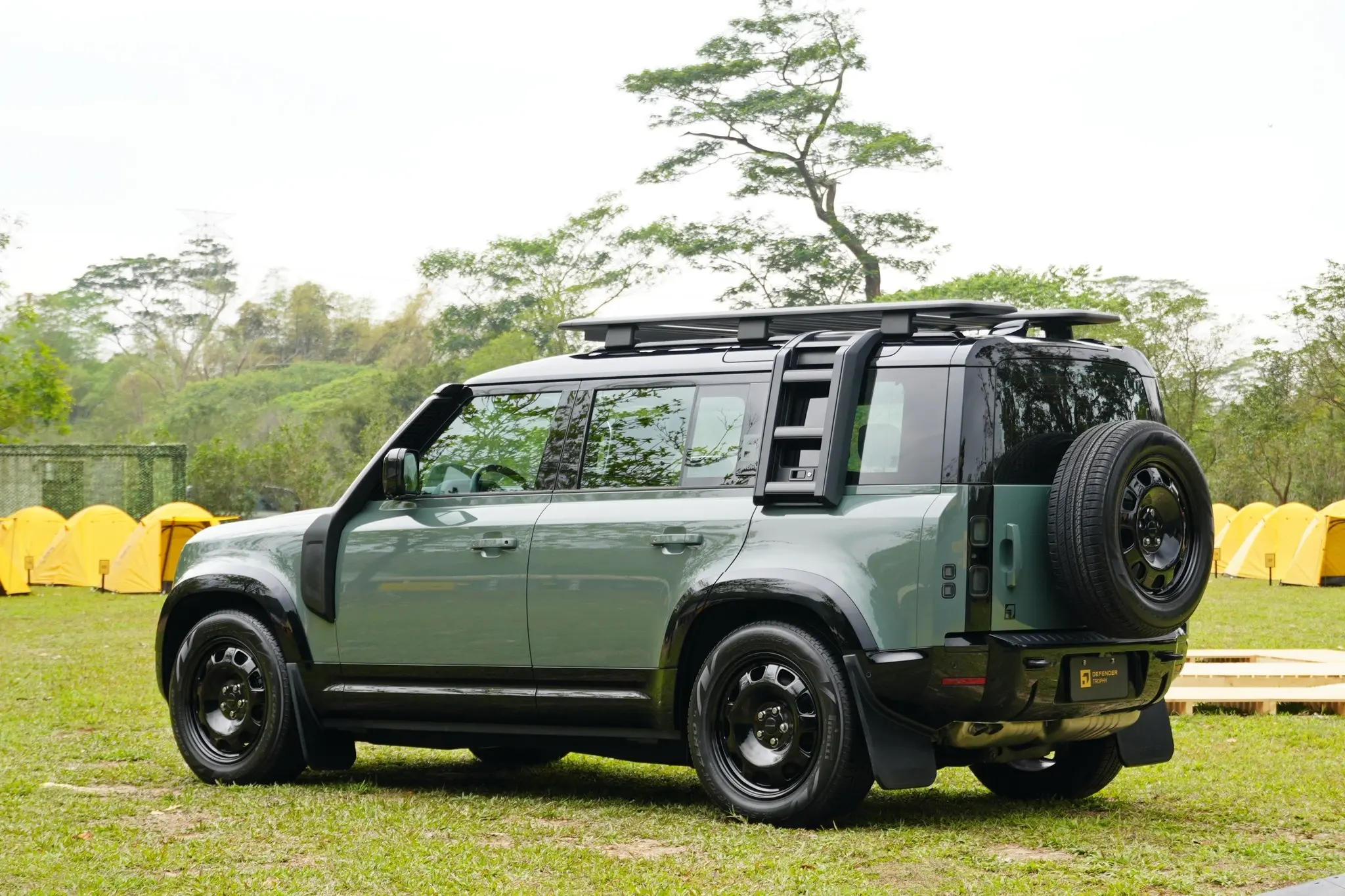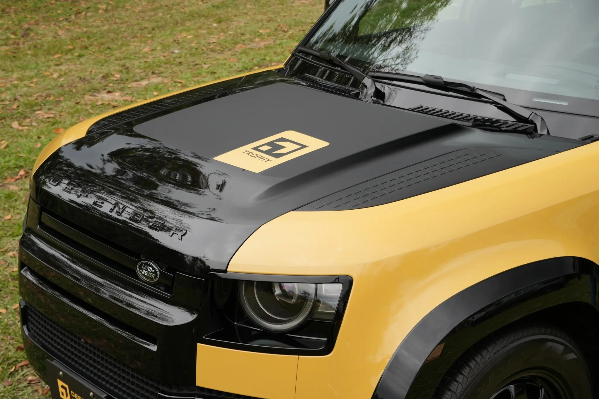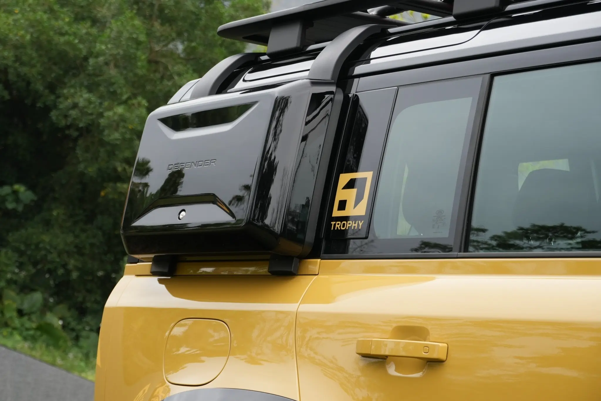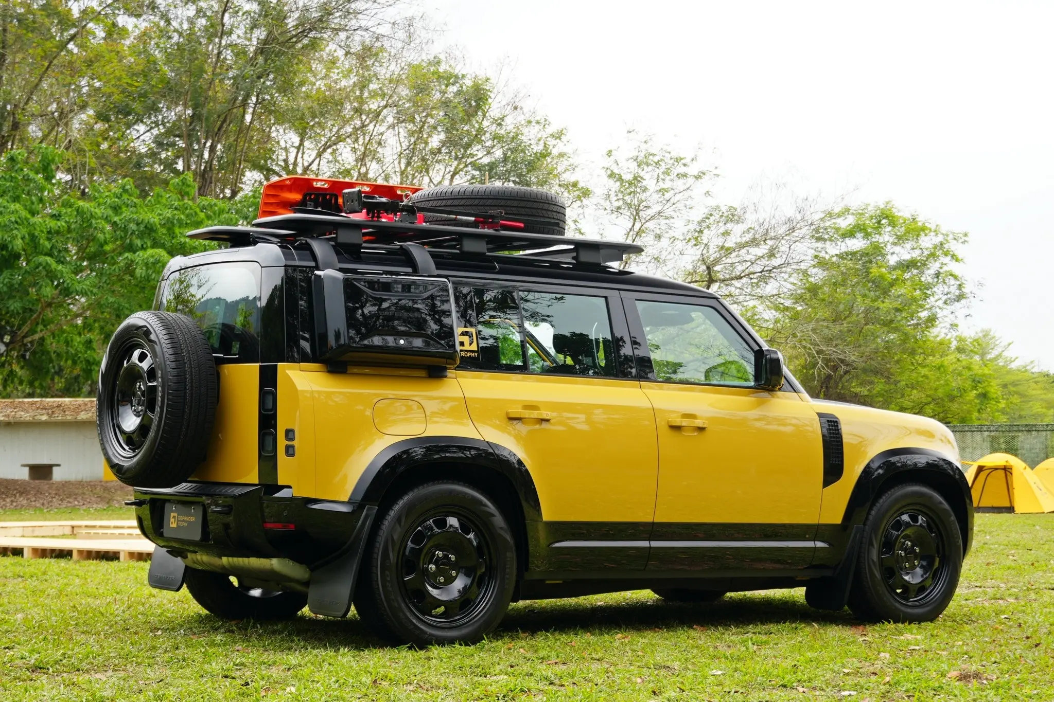 卫士牌越野车。Defender Trophy Edition路虎汽车 (Deep Sandglow Yellow) (Keswick Green)