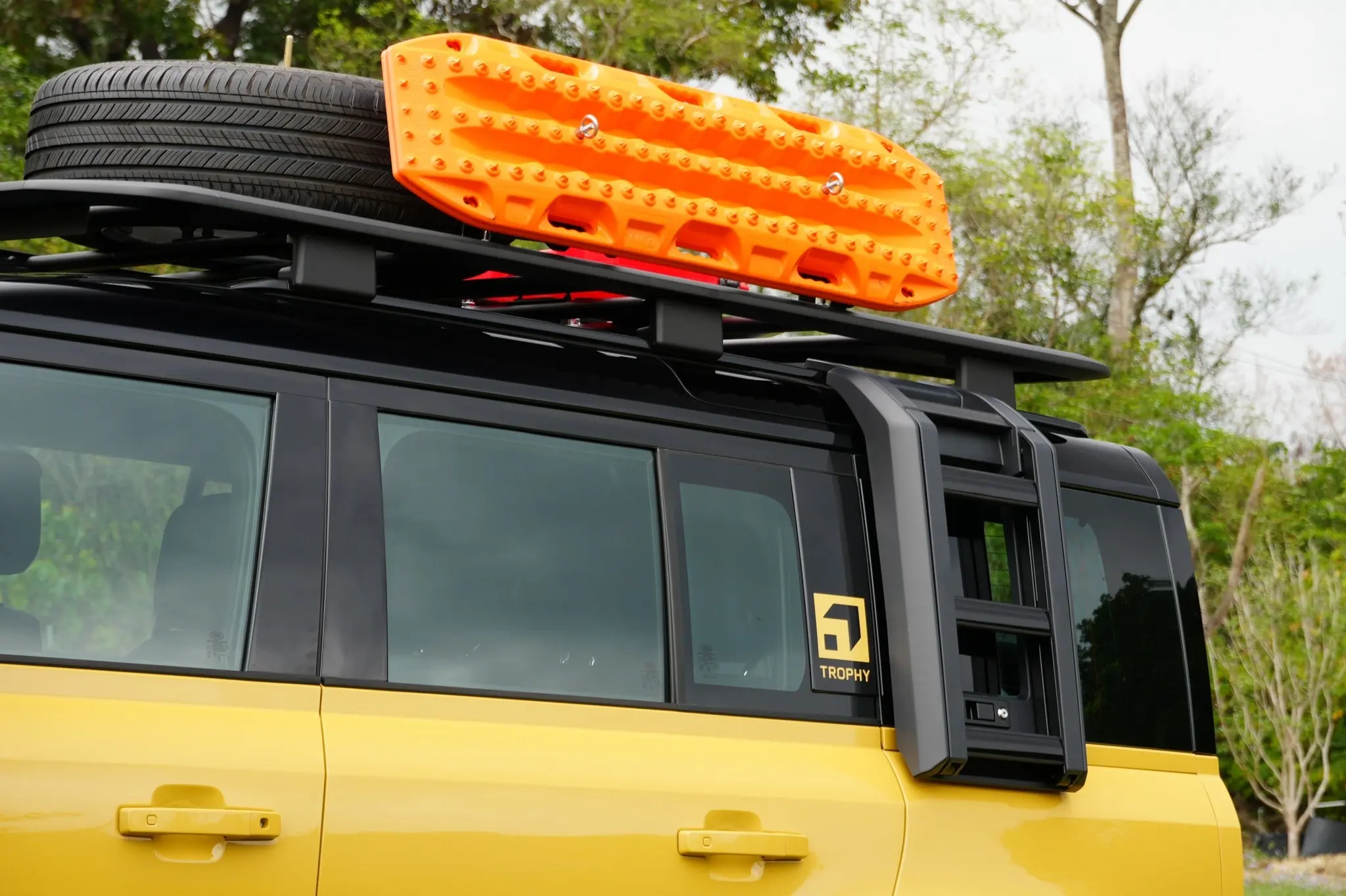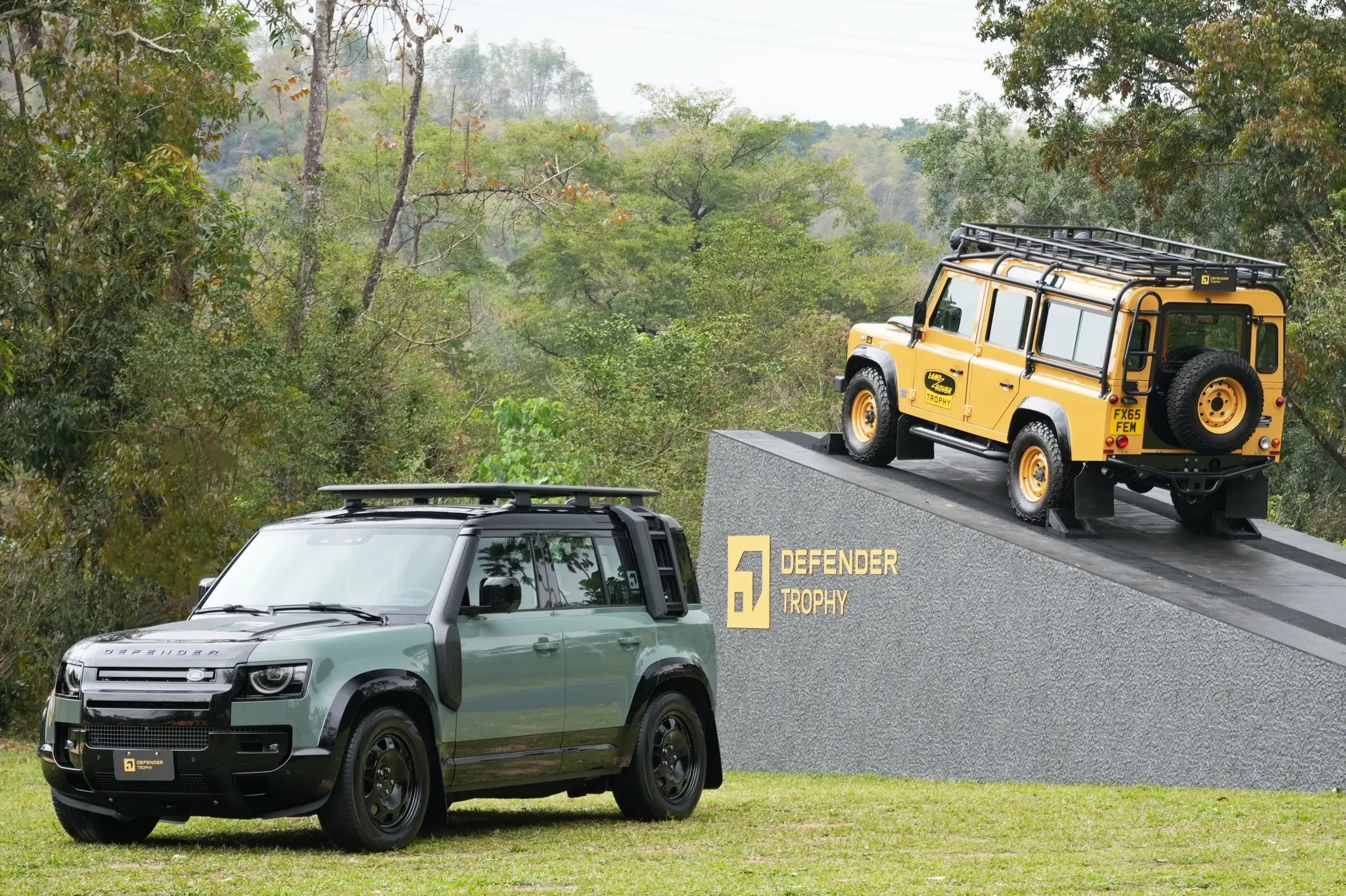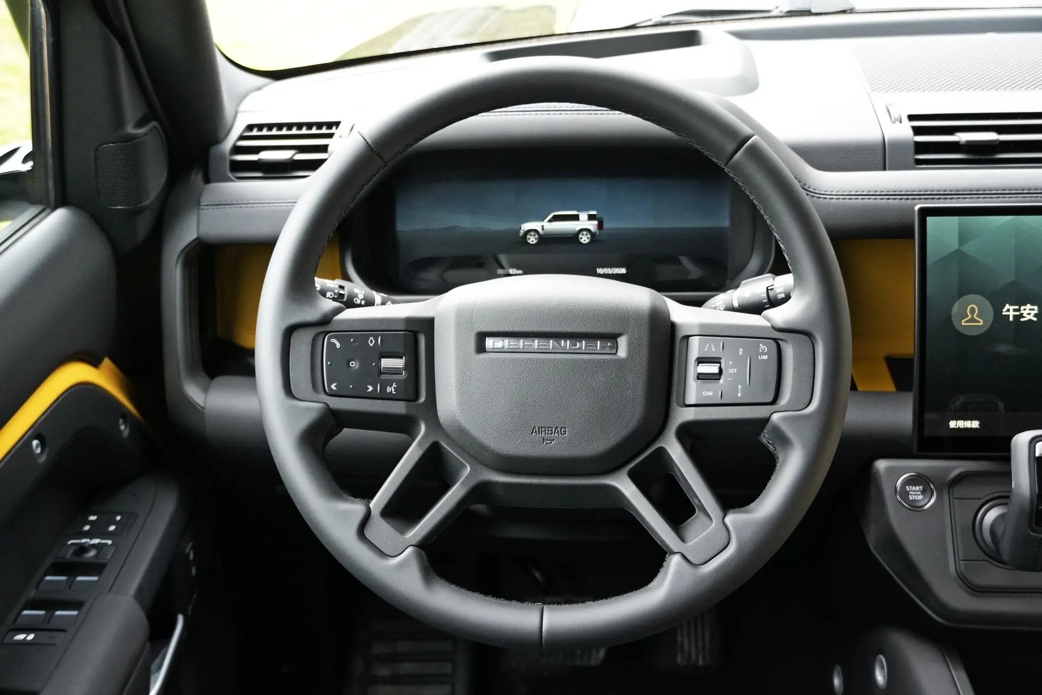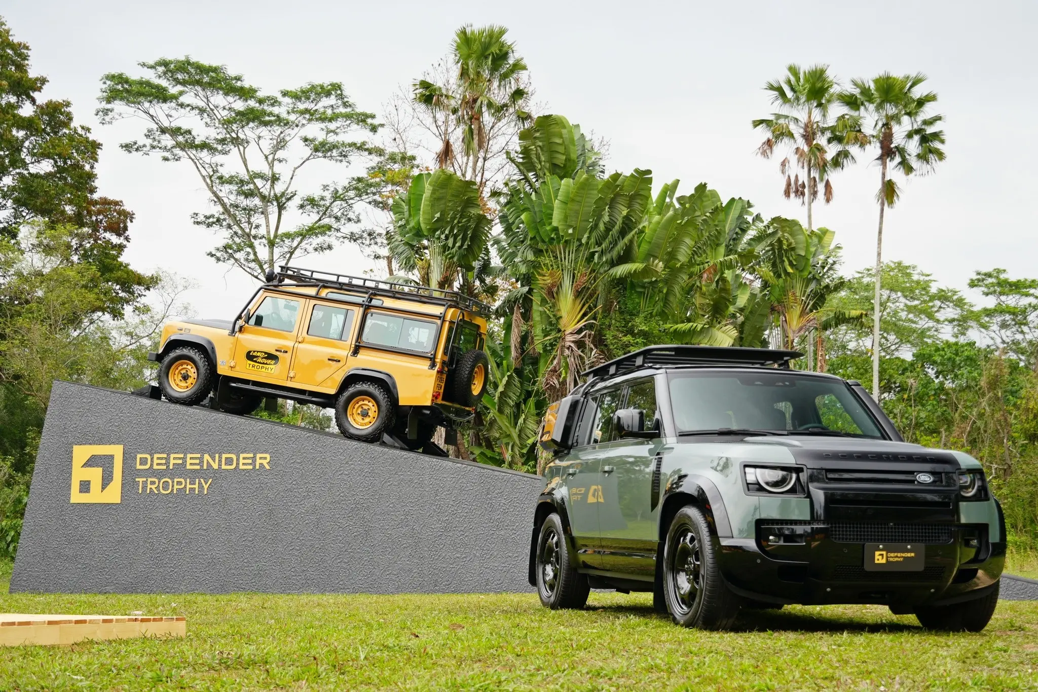 卫士牌越野车。Defender Trophy Edition路虎汽车 (Deep Sandglow Yellow) (Keswick Green)