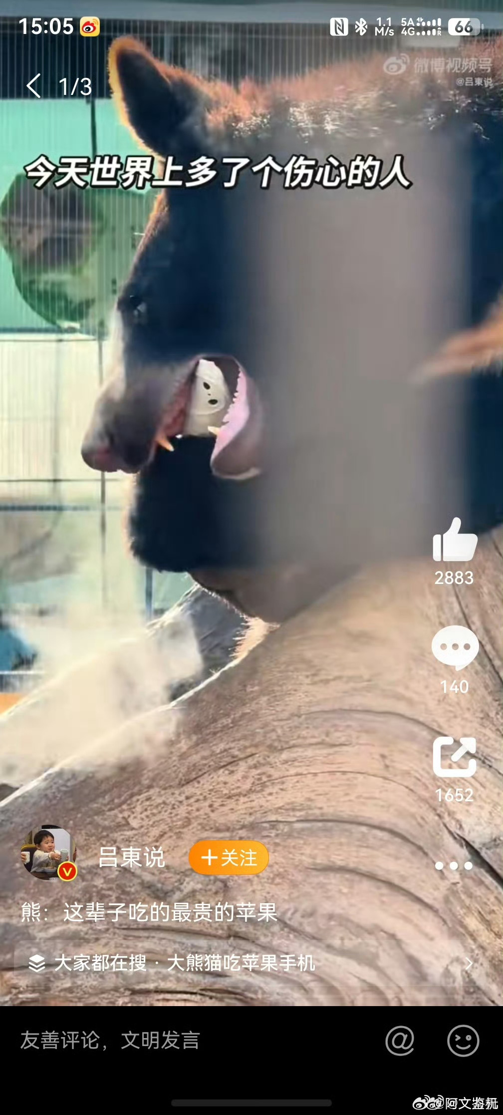 熊 这辈子吃的最贵的苹果熊这可怕的咬合力,只是没发现这口感和平时吃的不太一样吗?