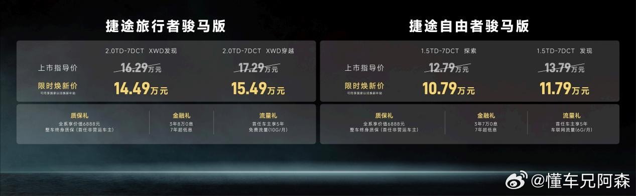 捷途旅行者骏马版&自由者骏马版上市,限时焕新价10.79万元起!