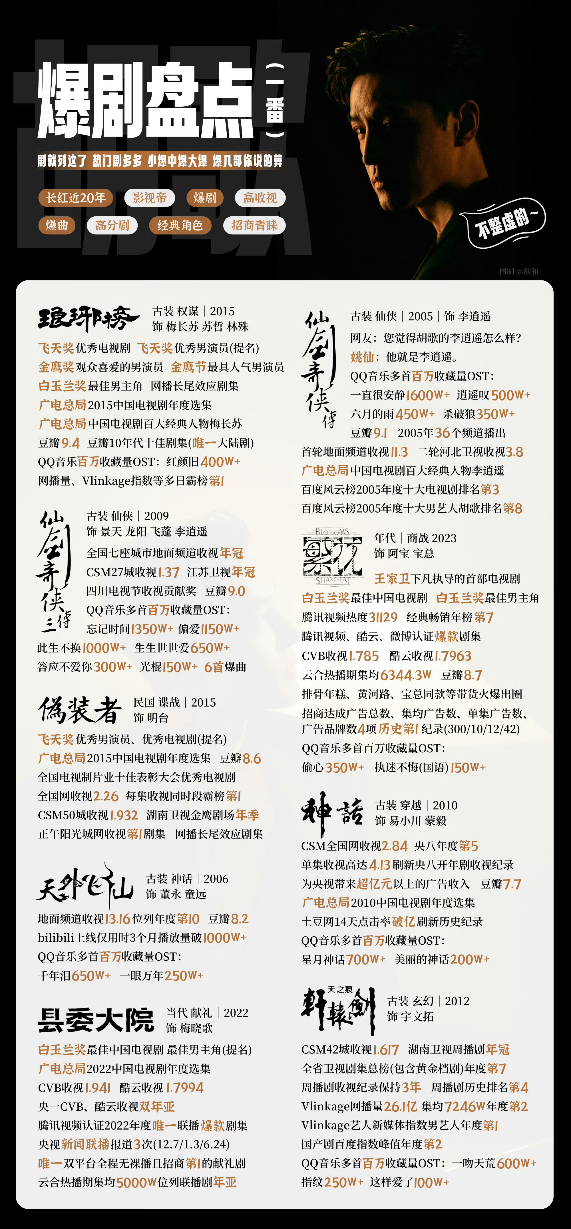 爆剧 养老剧虽然一哥是响当当的爆剧制造机 但是演员胡歌不养老步履不停还一直在路上