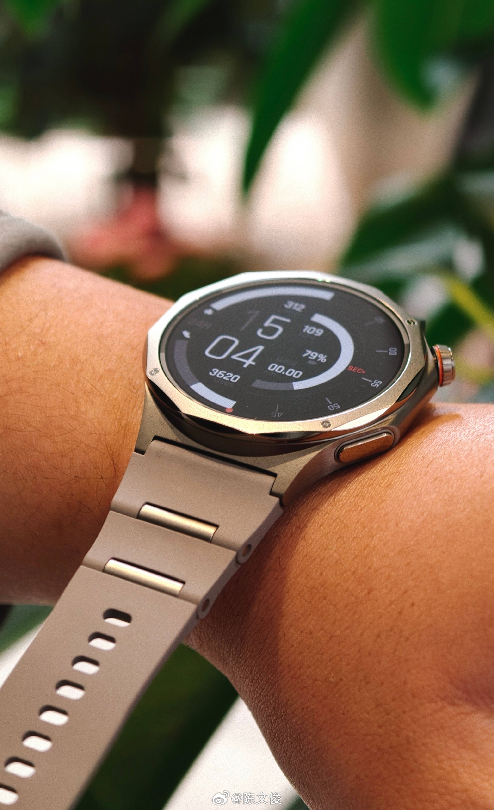 得益于钛材料的加入,Watch X3的表壳只有10.99mm厚,薄了6.5%;重量也减少了13.5%,只有43克,这是什么概念呢,只有最新一代Apple Watch Ultra的三分之二那么重。