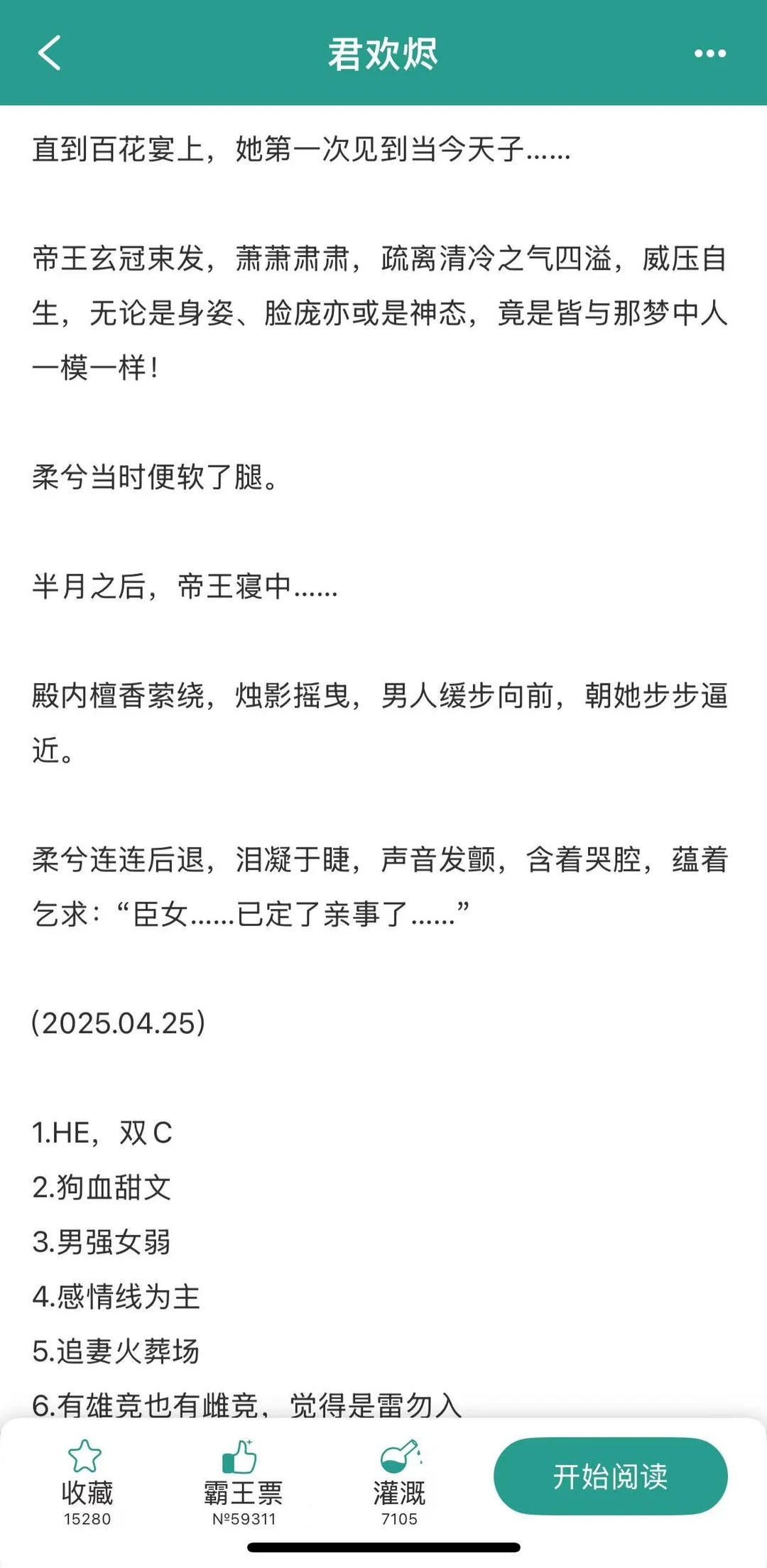 [彩虹R]貌美坚韧庶女 x 阴鸷疯批皇帝 [彩虹R]古言/宫廷侯爵/强取豪夺/前生今世/带球跑/追妻 [鼓掌R]狗血元素一大堆,前生今世+强取豪夺+追妻+带球跑,但是作者的处理意外的还不错,整个故事看下来文笔有条理,人物有动机,感情有铺垫,发展有伏笔,总体来说吃这口的还是可以读一读的。 [鼓掌R]要说男女主的感情,看似是不对等,但细品下来,男主也只是在一开始占上风,之后更多的是女主在掌握整个节奏。当然女主的性格也不是单纯的柔弱,有自己的想法和小心机,还蛮鲜活的一个形象。