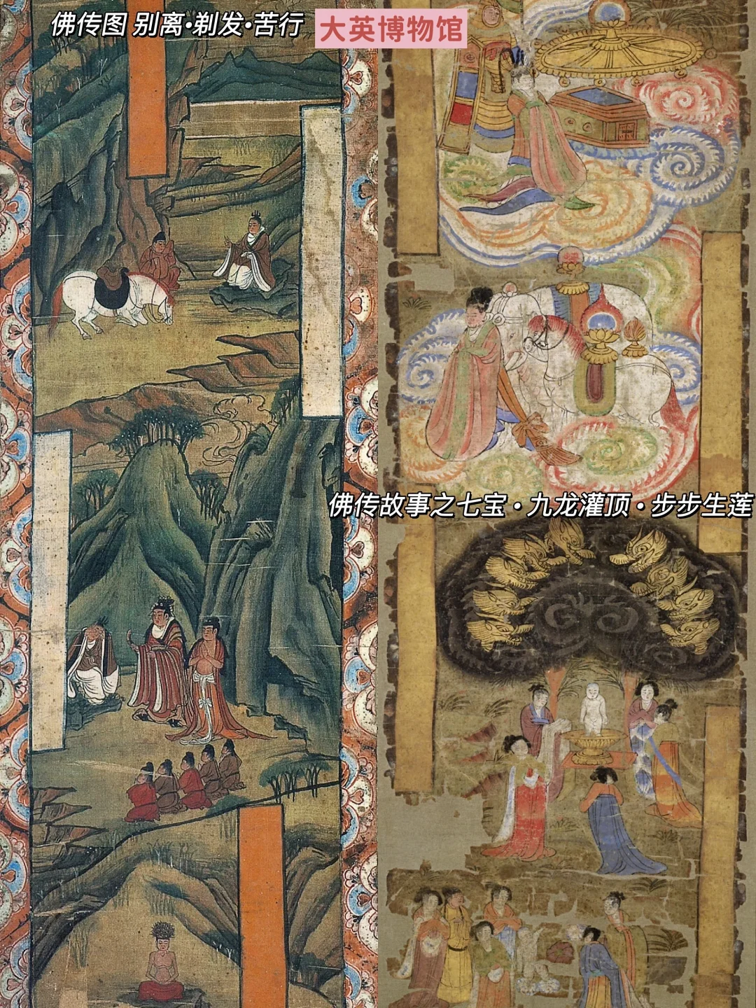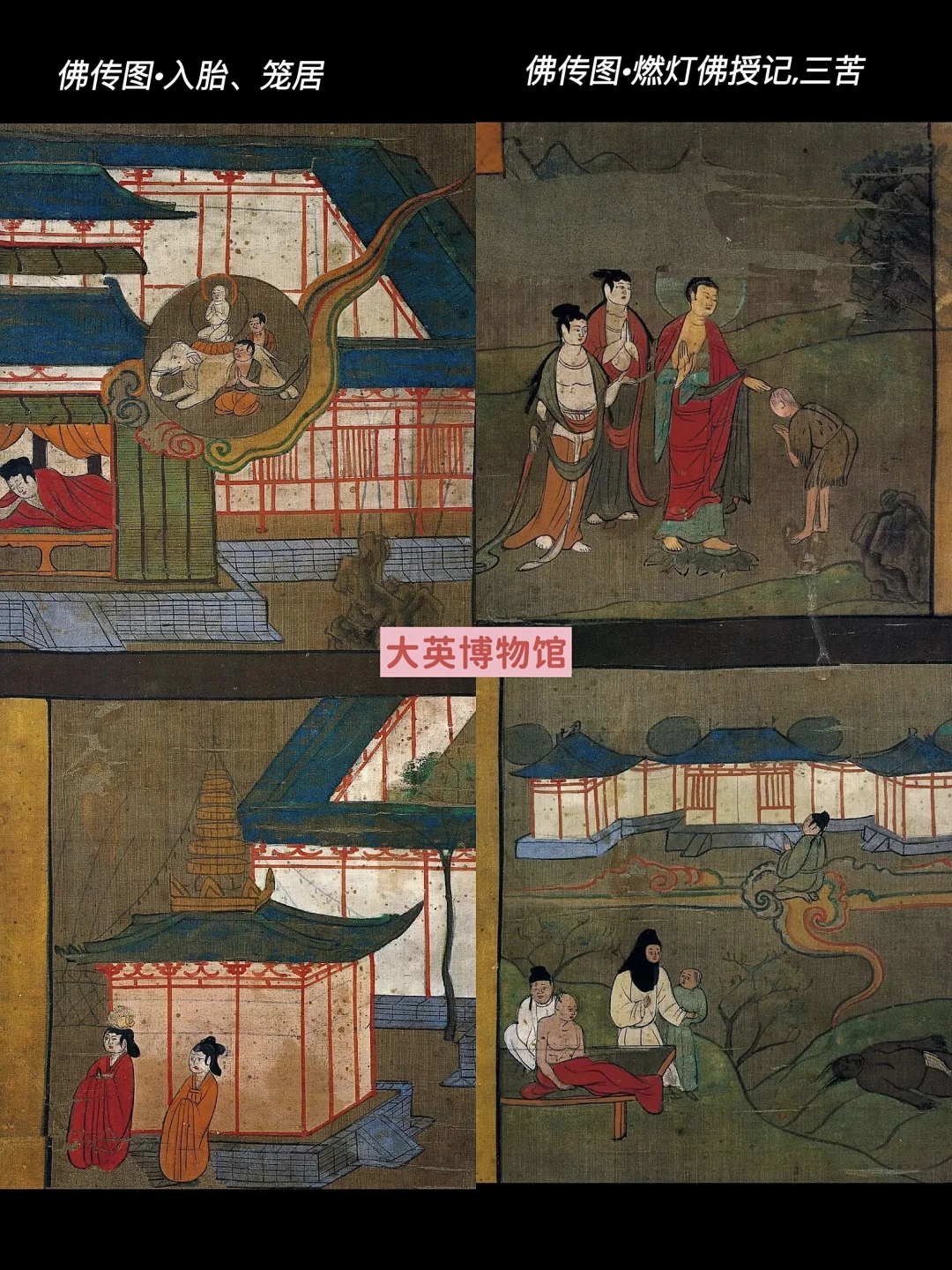 🔶一些图通过佛传故事表现释迦牟尼生平,比如摩耶夫人梦见能仁菩萨乘白象入胎由此诞下释迦牟尼。