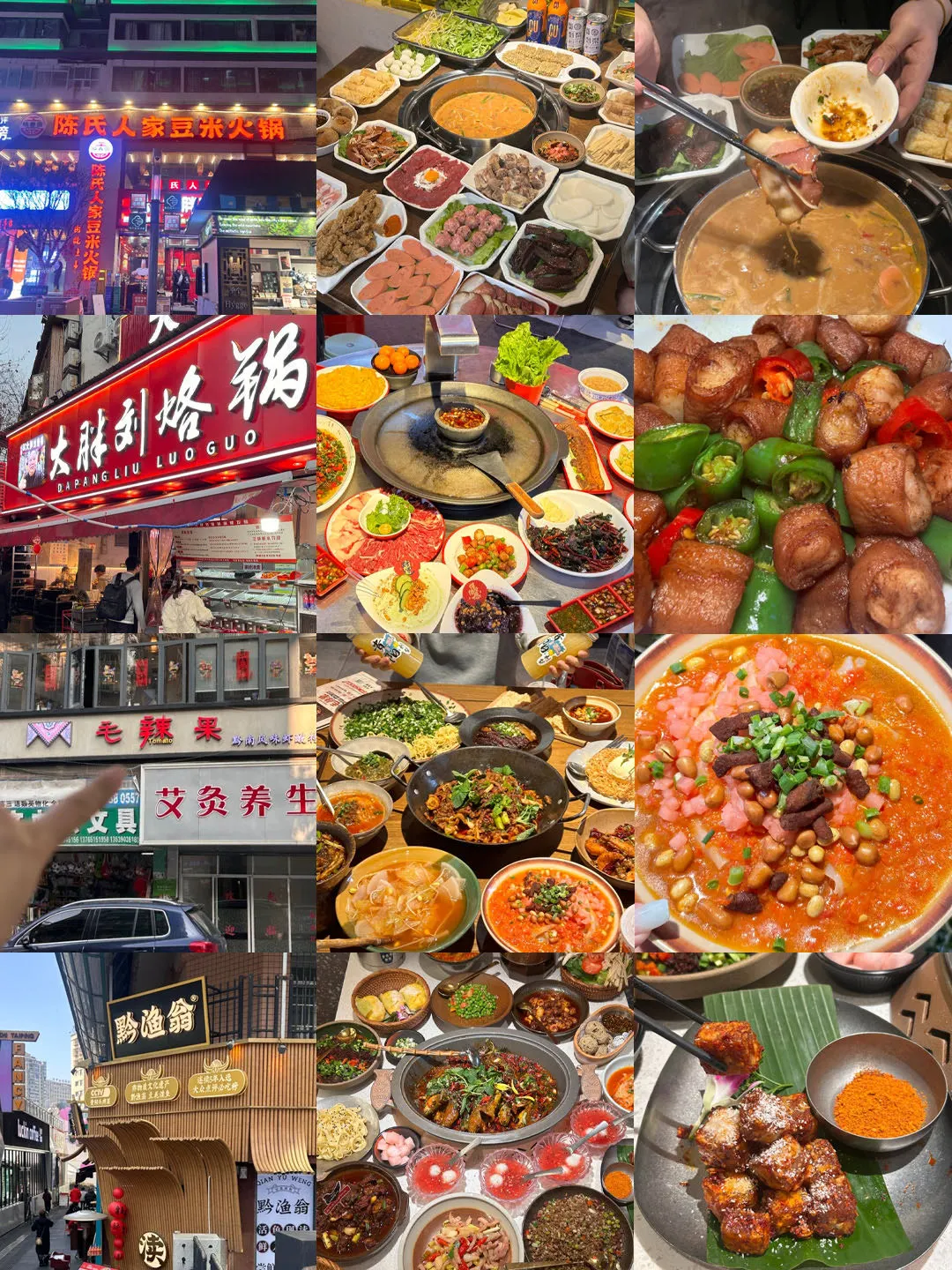 🍜大胖刘烙锅:秘制坨坨肉焦香四溢,安顺小肠和爆浆小豆腐更是灵魂必点,贵州旅游必吃的贵州烙锅。