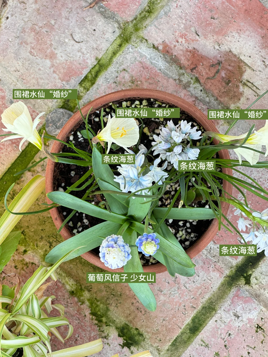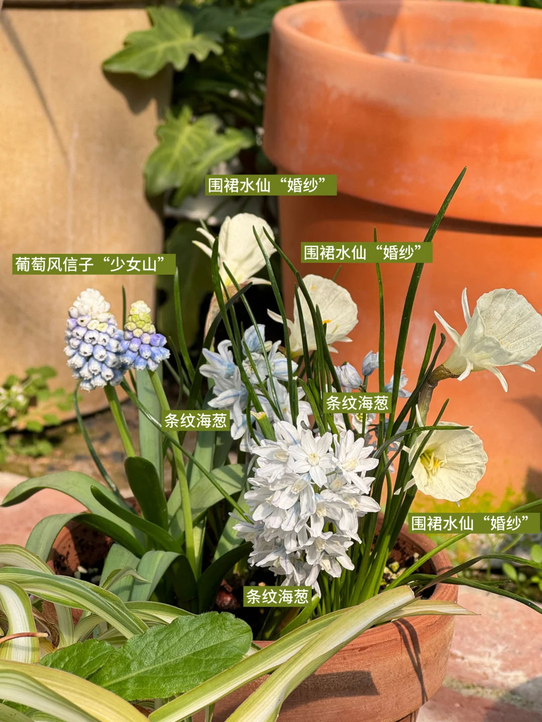 去年11月份把围裙水仙、葡萄风信子、条纹海葱种在一起,期待它们一起开花的画面🌸 期间一直记录📝,到现在正是爆花期,太好看啦~ 种球真争气!没辜负这好春光!