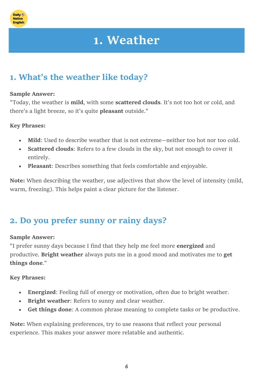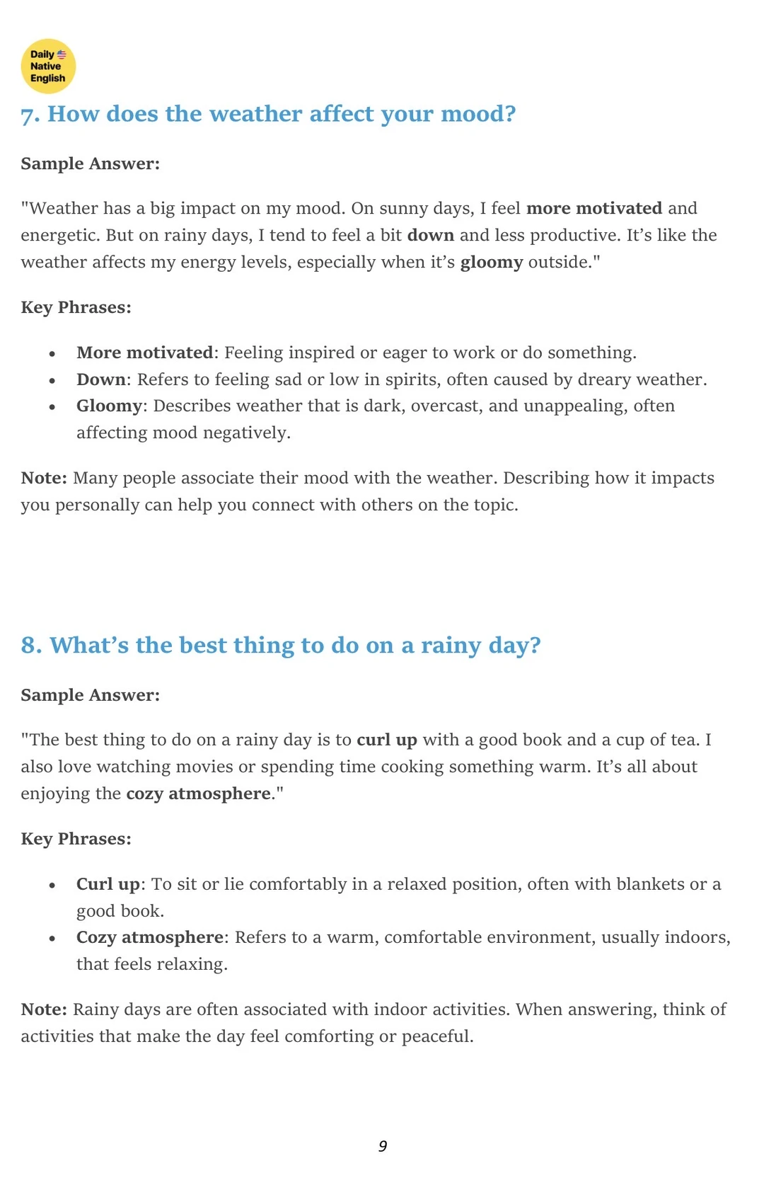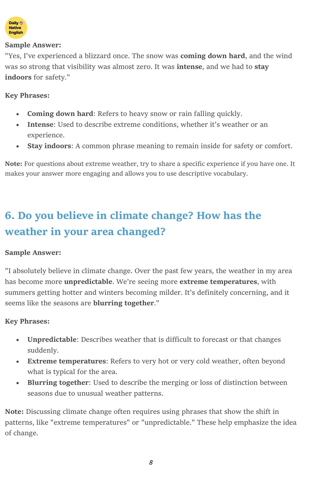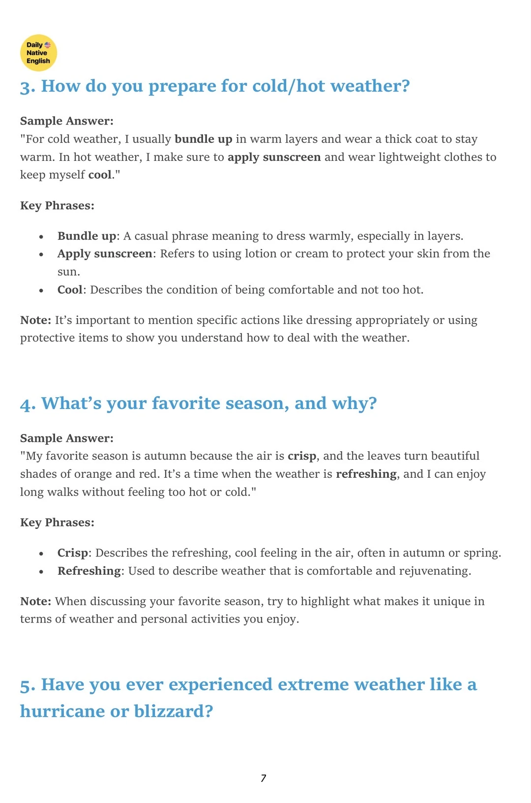 如在这本书中,例如在生活中常见的Weather天气话题里,我们可以积累到以下常用的口语表达: