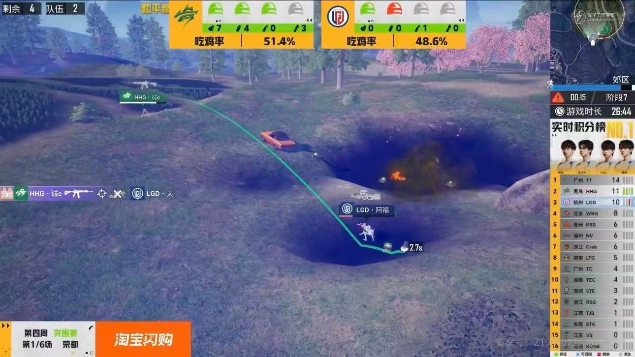 HHG拿下第四周首鸡,向着周决赛全力冲锋HHG第四周首鸡和平精英职业联赛