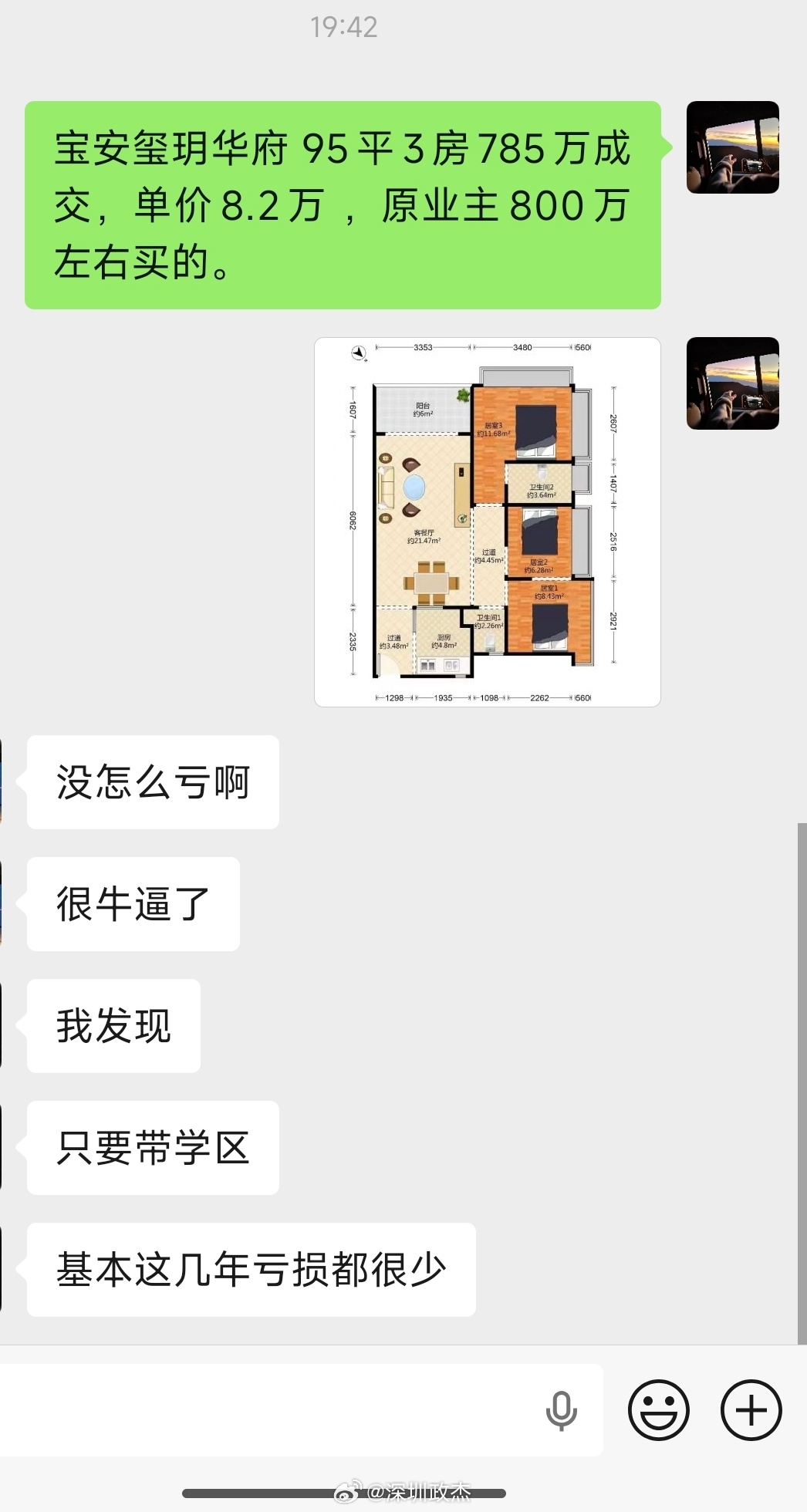 宝安玺玥华府 95平3房785万成交,单价8.2万 ,原业主800万左右买的。
