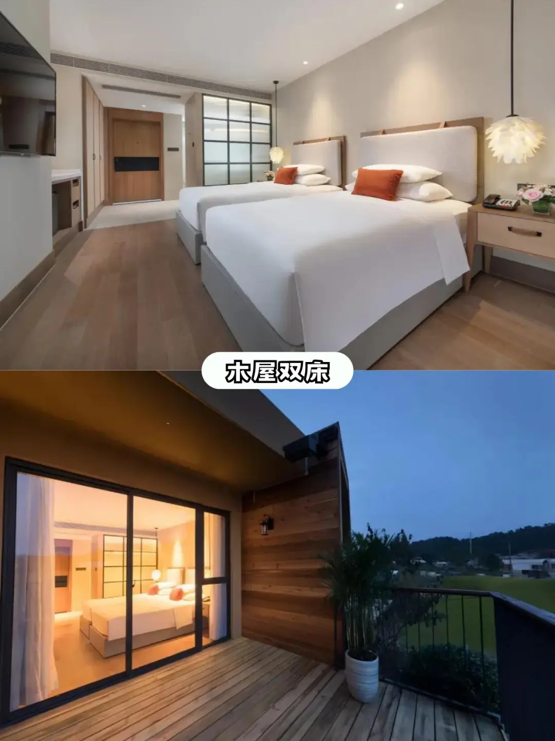 3⃣️木屋区:是一个个独立木屋,外带露台,风景都特别好。木屋套房有活动,47㎡卧室+客厅,比之前划算,性价比很高。