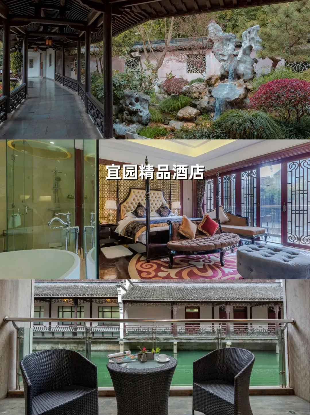 是古典园林式度假酒店,配置比较好,建在翡翠漾附近,旁边就是码头,与西栅大街隔了巷子,没那么吵,安静雅致。