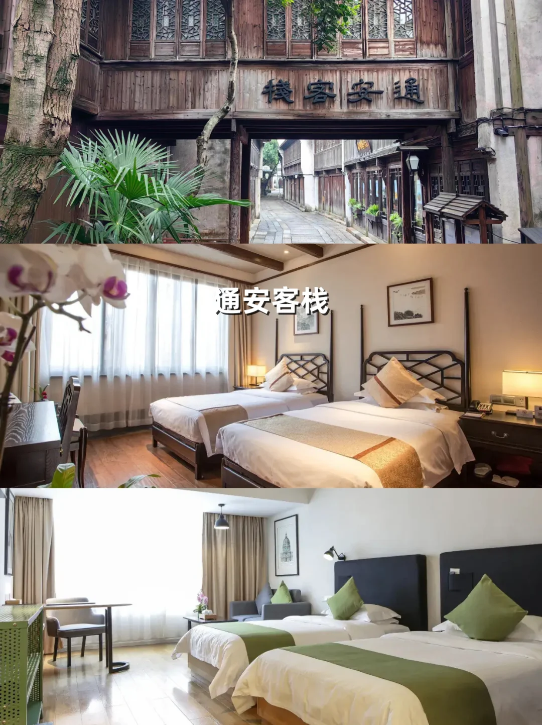 临河而建,是江南特色住宿,百年民居改建而成,木质阁楼,20㎡左右,有单人/双人/家庭房,临水房也最多。