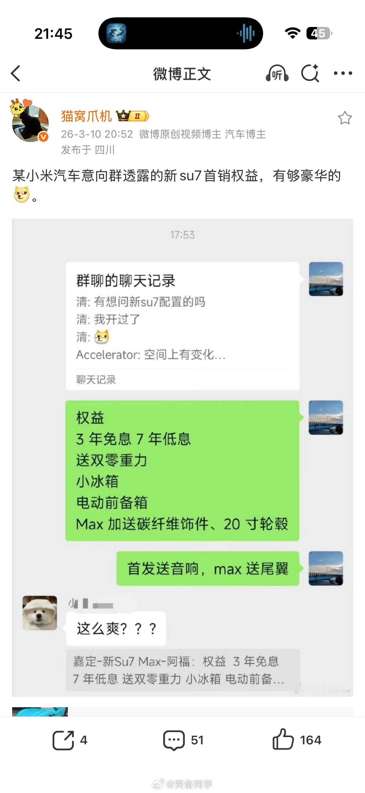 关于新一代小米SU7 的首发权益,这个图最近被传的挺广