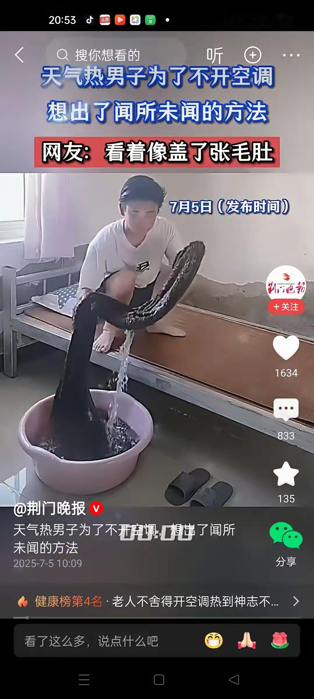 男子在出租屋里热的实在受不了,为了节省空调电费,他居然别出心裁打湿被子盖身上睡觉