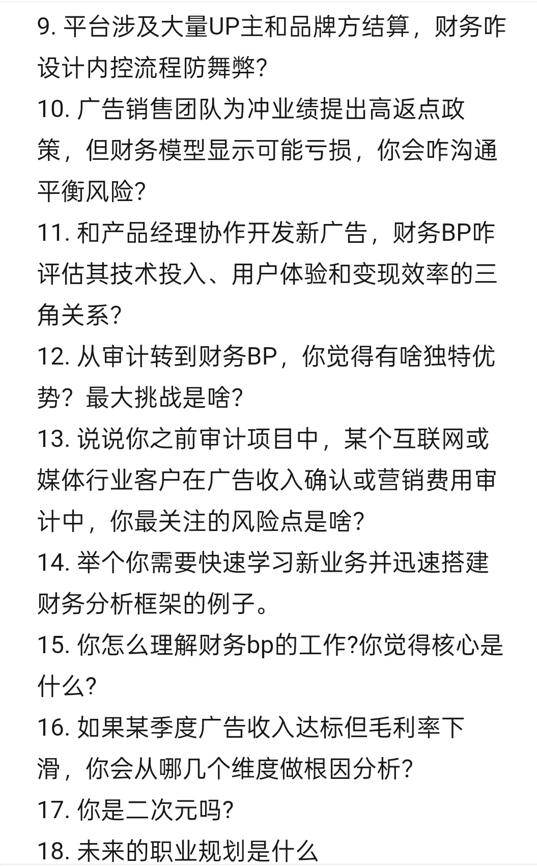 13. 说说你之前审计项目中,某个互联网或媒体行业客户在广告收入确认或营销费用审计中,你最关注的风险点是啥?
