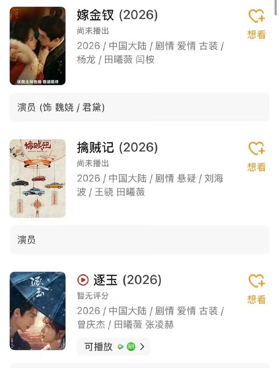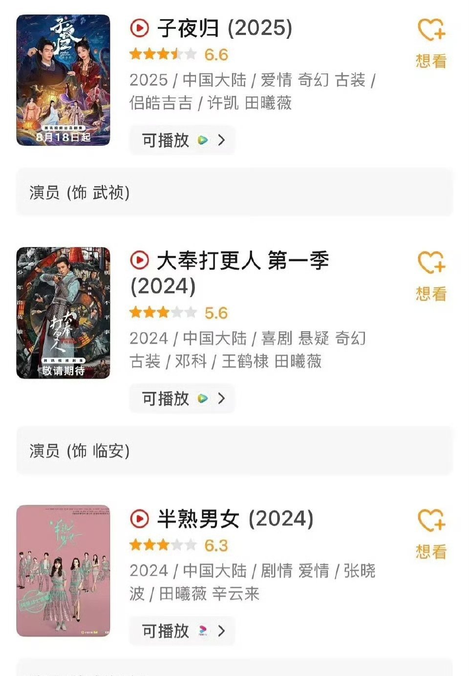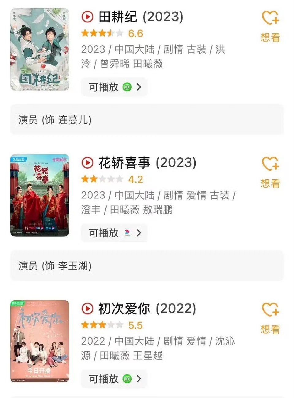 原来田曦薇资源这么好吗?一上来就演女主了。