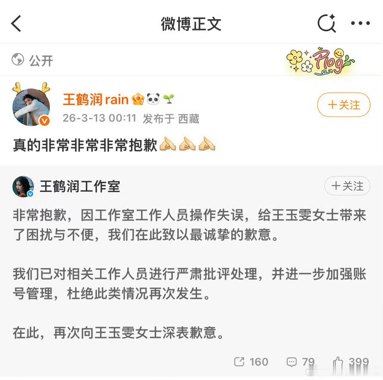 王鹤润王鹤润工作室解释了,王鹤润本人ip在西藏,最开始那个在上海,都不是一个地方王鹤润在西藏