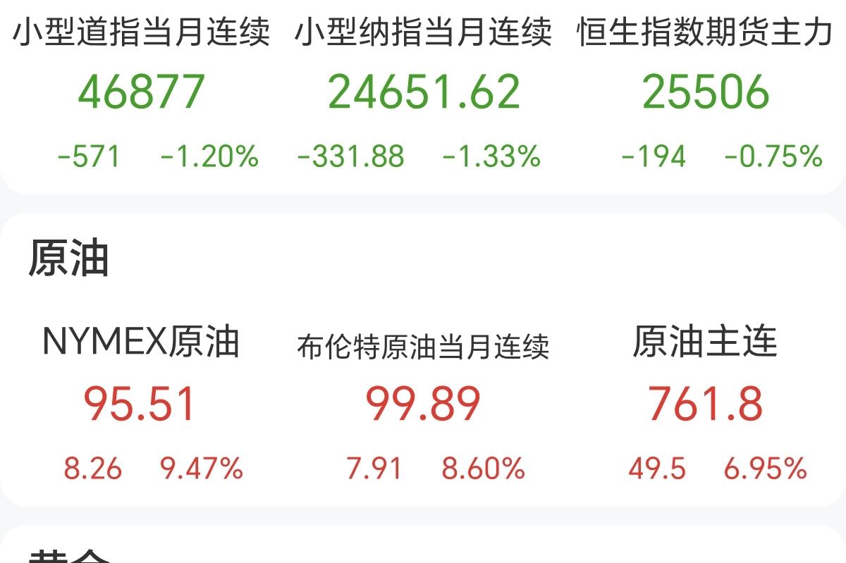 美股三大指数大跌!原油再次攻击100美元/桶! 伊朗最高领袖穆杰塔巴·哈梅内伊强烈表示:伊朗将继续采取包括封锁霍尔木兹海峡在内的战略手段,并在必要时开辟新的战线! 受此影响,美国三大指数大跌超1%,原油期货一度再次站上100美元/桶。 明天大A估计又够呛了!
