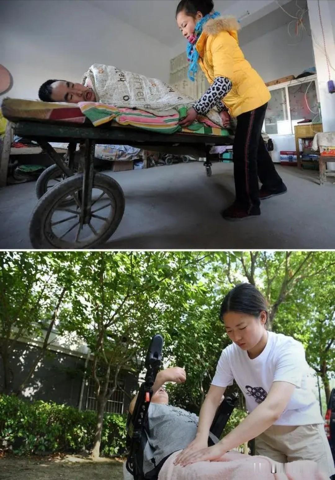 2001年,安徽一男子不慎摔成高位截瘫,谁知,妻子竟撇下父女俩一走了之。绝望之际,男子竟绝食3天,要结束生命。没想到,6岁女儿哭着说:“爸爸,还有我,我能照顾你!”女儿叫黄凤,爸爸叫黄志宏。 六岁的黄凤还没来得及享受完整的童年,就被命运推到了家庭支柱的位置上。 黄志宏高位截瘫后,身体除了头部和手臂能做轻微活动,其余部位完全失去知觉,日常起居没有半点自理能力,妻子的决绝离开,让这个本就陷入绝境的家庭彻底失去了支撑。 黄志宏看着眼前懵懂却又懂事的女儿,满心都是无力与自责,他觉得自己不仅没法给女儿安稳的生活,反倒成了拖累孩子的包袱,这才萌生了绝食离世的念头,想让女儿能少受一点苦。 黄凤看穿了父亲的心思,稚嫩的脸庞上满是慌张与不舍,她守在父亲床边不肯离开,哭着说出的那句承诺,不是孩童一时的戏言,而是她往后十几年都在坚守的信念。从那天起,黄凤放下了所有属于孩子的玩乐,开始一点点学习照料父亲的所有事宜。 她够不到家里的灶台,就搬来破旧的小凳子踩在上面,学着煮最简单的稀饭,刚开始不是把水烧干就是米煮得夹生,滚烫的锅沿好几次烫红她的小手,她也只是揉一揉泛红的皮肤,继续摸索着做饭的方法。 照顾高位截瘫的病人远比想象中艰难,黄志宏长时间卧床极易生褥疮,黄凤每天都要定时给父亲翻身、擦身,她的力气小到挪不动父亲的身体,就一点点借力挪动,动作笨拙却格外认真,一天要重复数十次这样的动作,从不敢有丝毫懈怠。 家里没有任何经济来源,黄凤就趁着空闲去路边、村口捡废品,空塑料瓶、废旧纸板都是她眼里能换钱的宝贝,她把攒下的零钱小心翼翼收在铁盒子里,全部用来给父亲买药品和简单的吃食,自己从来舍不得多花一分钱。 村里的乡亲看着这对相依为命的父女,心里满是心疼,总会时不时送些米面蔬菜过来,黄凤每次都会对着帮忙的乡亲深深鞠躬,把这份善意牢牢记在心里。 日子在艰难中一天天过去,黄凤也慢慢长大,她看着父亲常年被病痛折磨的模样,心里悄悄生出一个坚定的想法,她要带父亲去大城市看病,她始终相信父亲的身体能有好转的可能。 没有足够的路费,她就把多年捡废品攒下的零钱全部倒出来,又厚着脸皮挨家挨户向乡亲求助,凑够了为数不多的路费。 没有合适的交通工具,她就找来铁板和旧轮子,亲手做成简易的板车,就这样,十几岁的黄凤拉着载有父亲的板车,踏上了前往上海的求医路。 几百公里的路程,她一步一步往前挪,饿了就啃几口自带的干粮,渴了就喝路边的凉水,累到双腿发软就靠在板车上歇片刻,全程没有一句抱怨,心里只想着尽快带父亲看上病。 抵达上海后,医院的医护人员得知黄凤的经历,都被这个女孩的孝心与坚强深深打动,医院为黄志宏开通了绿色通道,免费为他做全面的身体检查。 尽管最终的检查结果显示,黄志宏的神经损伤已经无法完全修复,可黄凤依旧没有半点失落,她觉得只要能让父亲得到专业的诊疗,能减轻一点病痛,所有的付出都值得。 回到家乡后,黄凤依旧把照顾父亲放在生活的第一位,同时她也没有放弃自己的学业。 她把每天的时间安排得满满当当,天不亮就起床为父亲洗漱、做饭,打理好所有家务后再匆匆赶往学校,放学回家的第一件事就是守在父亲身边,处理父亲的日常需求,等到父亲安稳睡下,她才拿出课本在昏暗的灯光下学习到深夜。 黄志宏看着女儿十几年如一日的付出,心里的愧疚与心疼从未停止,他常常在夜里偷偷落泪,庆幸自己当初没有真的放弃生命,才能拥有这样贴心懂事的女儿。 他开始学着调整心态,用乐观的态度面对生活,哪怕身体不便,也会尽力用言语安慰女儿,父女俩就这样相互支撑,熬过了一段又一段艰难的时光。 黄凤的孝心与坚强渐渐被更多人知晓,社会上的爱心人士纷纷伸出援手,为父女俩解决生活和医疗上的难题,让他们的生活慢慢有了起色。可黄凤始终没有忘记初心,依旧悉心照料着父亲,用自己的行动守护着这个历经磨难却始终温暖的家。 稚嫩的肩膀扛起苦难,纯粹的孝心撑起希望,黄凤用最朴素的坚守,让破碎的家庭重新有了温度,也让我们看到了亲情最动人的模样。 各位读者你们怎么看?欢迎在评论区讨论。
