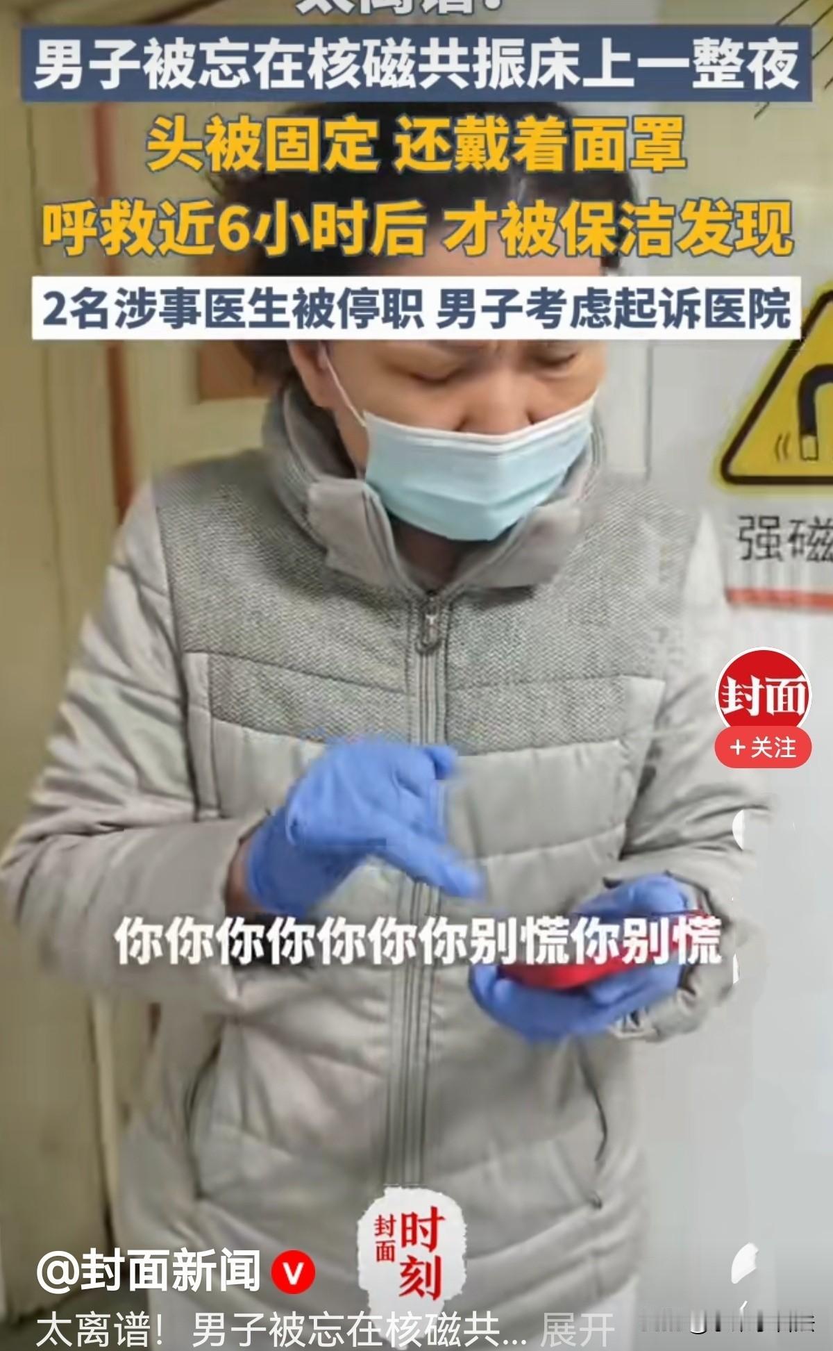 太离谱了!湖北武汉,一男子脖子疼去医院做检查,凌晨时他躺上核磁共振机器,头被固定,还戴着面罩,手机放在外面。可机器一直在响,却没人管他了,他喊了一夜,直到次日早上,保洁听到他的呼叫才被发现。原来,医 生启动检查后去忙了别的,还提前在系统里录了已完成检查交接给其他同事,竟把他遗忘在机器里6个小时。男子妻子:等人不回,电话不接,她都跑医院报警,查监控无其身影! 2月25日晚上10点多,唐先生感觉颈部疼痛难忍,独自前往医院就医。 经过排队等候,他终于在26日凌晨零点左右,进入核磁共振检查室。 进入检查室后,医生按照流程为唐先生固定头部、佩戴好面罩,唐先生也遵照要求,将手机放在了窗台上。 一切准备就绪,机器启动后,这名医生却因为有其他紧急工作需要处理,匆忙离开了检查室。 可让人没想到的是,这位医生离开前严重违反了操作规范,直接在医院系统里标记唐先生的检查已经完成。 然后口头跟同事交代了一句,唐先生还在机器上,后续需要处理。 这样不规范的交接,为后续的意外埋下了巨大隐患。 躺在机器上的唐先生对这一切一无所知,他一直直挺挺地躺在机器里认真按提示做检查。 大约半个多小时后,唐先生就察觉到了不对劲。机器好像已停止运作,却始终没有人来为他解开固定装置、摘下面罩。 他开始大声呼救,可无论怎么喊,外面都没有任何回应。 因为身处核磁共振仪器内,唐先生担心随意乱动会发生危险,只能一直保持固定姿势,一边忍受着颈部的疼痛,一边不停呼救。 可整整6个小时,没一个医护人员前来查看,他就这样被困在冰冷的仪器上,陷入了绝望。 与此同时,唐先生的妻子在家中焦急万分。丈夫出门看病许久未归,拨打手机也始终无法接通,担心丈夫出事的她,凌晨时分急忙赶到医院,还拨打了报警电话求助。 可当保安查询医院系统时,却显示唐先生的检查早已完成,再查看相关监控,也找不到唐先生的身影,寻找工作一度陷入僵局。 直到清晨6点,一位保洁员进入检查室打扫卫生时,隐约听到了微弱的呼救声。 顺着声音寻找,保洁员这才发现被困在核磁共振机器上的唐先生,赶紧通知保安前来解救。 被成功解救后,唐先生第一时间联系上妻子,告知了自己的遭遇。 3月12日,此事有了最新进展。 涉事医生承认,当时是因为交接班出现严重失误,才导致唐先生被长时间遗忘。 目前,这两名涉事医护人员已经被停职,事发当天,涉事科室就召开了会议进行内部整顿。 医院也正式向唐先生致歉,承认医院在管理上存在严重漏洞,并且已经对涉事科室开展全面整顿,加强对所有医护人员的操作规范和责任意识培训。 不过关于赔偿问题,唐先生与医院多次沟通,始终没能达成共识。 院方表示,如双方无法协商一致,建议通过司法途径来解决这起纠纷。 《民法典》第577条 规定:当事人一方不履行合同义务或者履行合同义务不符合约定的,应当承担继续履行、采取补救措施或者赔偿损失等违约责任。 唐先生缴费就诊,与医院成立医疗服务合同。医院核心义务是安全、规范、及时完成检查,履行其应尽职责和义务。 ​医生擅自离岗、虚假标记“检查已完成”、无书面交接,致检查未完成、人身被困6小时,未履行约定义务,应承担违约责任。 ​ 唐先生可主张:退还检查费、赔偿误工费、精神损害抚慰金。 《民法典》第1221条:医务人员在诊疗活动中未尽到与当时的医疗水平相应的诊疗义务,造成患者损害的,医疗机构应当承担赔偿责任。 回顾整个事件,暴露出的问题触目惊心。首先是医疗流程存在严重漏洞,医生违规提前标记检查完成,没有规范的书面交接和复核机制。 其次,检查室没有配备有效的紧急呼叫装置,患者被困后无法及时求助,医患沟通和应急响应能力严重不足。 再者,医院信息系统管理存在缺陷,错误的检查记录直接导致家属寻找和警方调查受阻。 最让人无法接受的是,夜间值班人员责任心缺失,巡查工作形同虚设,6个小时都没人发现检查室的异常情况。 所以医院违规在先,直接推定其有过错,举证责任倒置,根据《民法典》第1179条、第1183条 :唐先生可要求医院支付医疗费、交通费、营养费、误工费及高额精神抚慰金。 医疗安全无小事,任何流程上的疏忽、责任心的缺失,都可能给患者带来难以估量的伤害。 对此您怎么看?