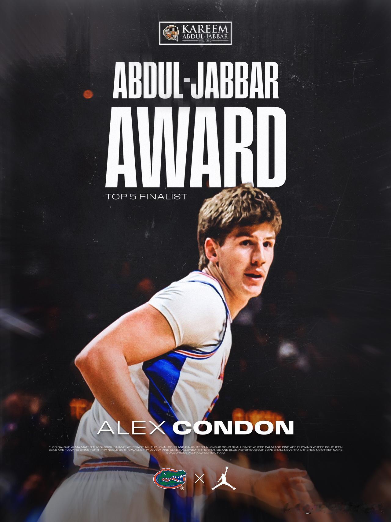 贾巴尔奖=年度最佳中锋的最终五人候选名单,2026年nba选秀 佛罗里达大学Alex Condon,冈萨加大学Graham Ike,堪萨斯大学Flory Bidunga,北卡大学Henri Veesaar,圣约翰大学Zuby Ejiofor。