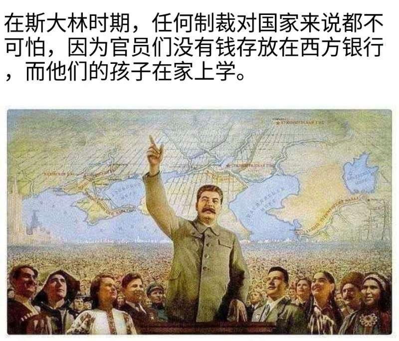俄国人民怀念斯大林时代的风清正气。斯大林时期,苏联压根不惧任何制裁,毕竟官员们没在西方银行存钱,他们的孩子也都在国内上学。