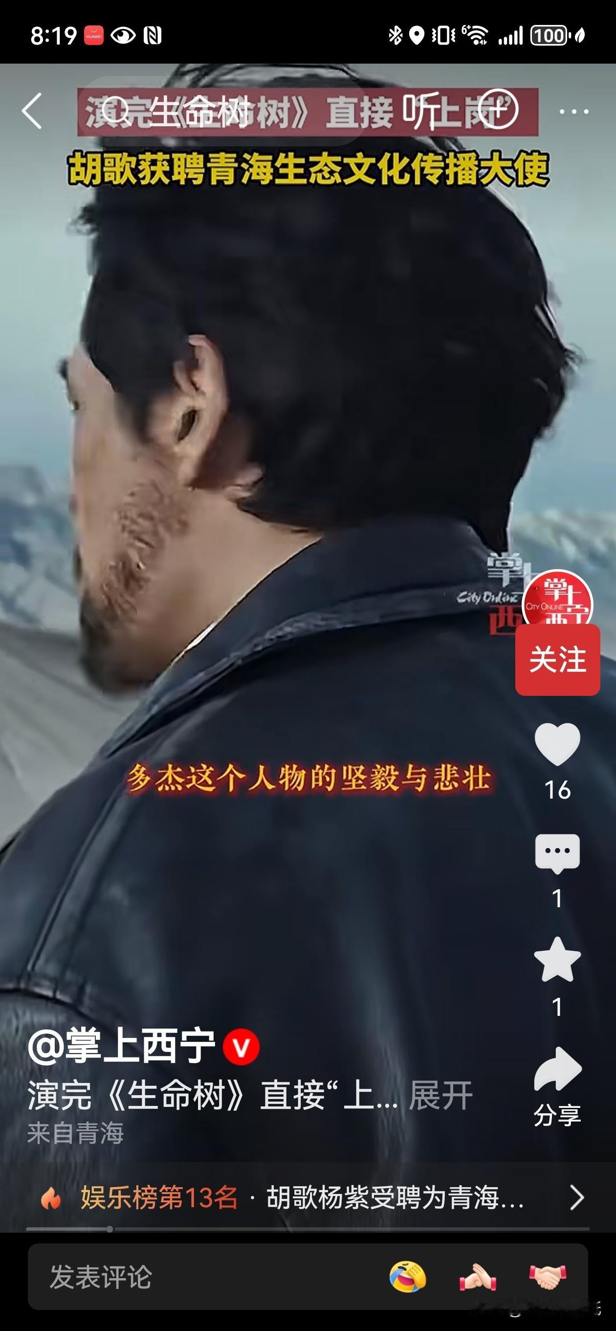 昨天,娱乐圈最热血也最温情的一条消息刷了屏:胡歌和杨紫,正式被青海省聘为“青海生态文化传播大使” 。 没有盛大的红毯,也没有华丽的通稿。这份聘书,是由青海省书法家协会的书法家亲手写就,墨香里透着高原的质朴与真诚 。杨紫在飞机上收到这份惊喜,深夜发文:“愿我们心中都有一棵常青的生命之树” ;而胡歌在座谈会上一段话直接让人破防——谈及拍摄《生命树》的苦,他红了眼眶:“想想30年前的巡山队员,用血肉之躯拦在盗猎者的枪口前,那才是真正的以命相搏” 。 为什么是他们?因为真正的“顶流”,应该流向最需要被看见的地方。 从《琅琊榜》的谋士到可可西里的守护者,胡歌把对生命的敬畏带到了海拔4000米的无人区;杨紫则用流量女孩的号召力,让更多人看见那些默默守护三江源的“可爱的人” 。他们主演的《生命树》,让青海省委书记数次落泪,直言“源自真实的牺牲” 。 剧中那棵扎根大地的“生命树”,不仅是可可西里的藏地传奇,更是青海向世界发出的邀请函 。 这或许就是“明星”二字最好的打开方式: 不是站在聚光灯下,而是走进风雪里,让流量向善,让星光为绿水青山点亮 。胡歌说得好:“当我们谈论生态保护时,其实是在守护人类共同的未来。” 下次你去青海,记得看看那些巡山的路——那是他们用生命,替我们守护的诗与远方。 你被他们演绎的哪个角色打动过?欢迎在评论区为这对“守护者CP”打call! 春日生活打卡季