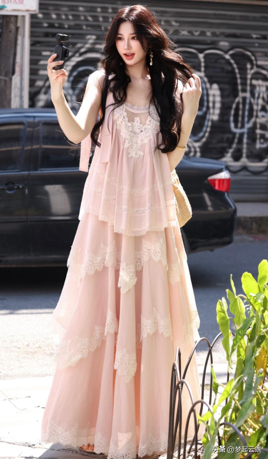 粉嫩蕾丝裙,甜美少女心,阳光下的浪漫时光🌞👗💖