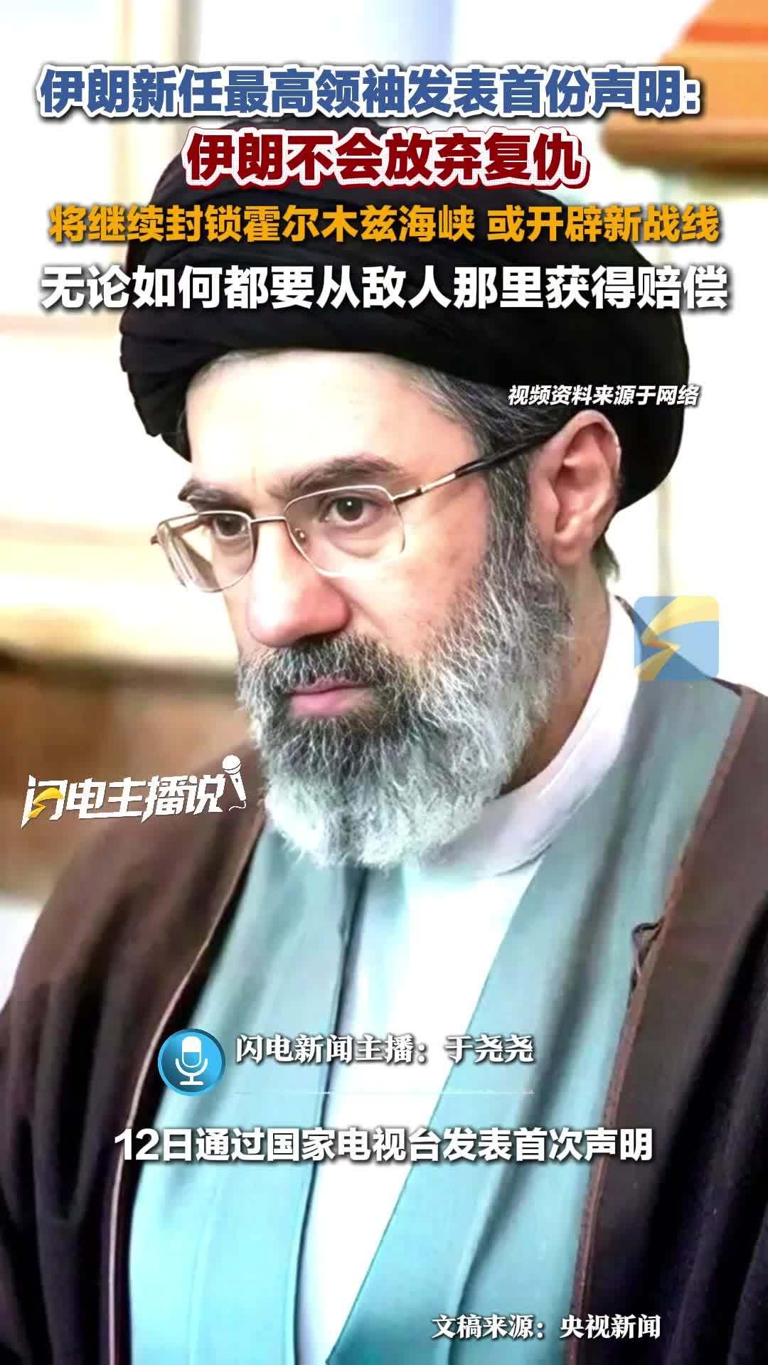 3月13日,据央视早间新闻报道,伊朗新仼最高领袖穆杰塔巴3月12日在国家电视台发表声明,内容主要是围绕伊朗国内团结、对外冲突、地区关系,以及对已故领袖哈梅内伊悼念! 他表示,伊朗将继续采取包括霍尔木兹海峡在内的战略手段,羊在必要时开辟新战线。 评论,这是伊朗新领导人首次公开露面,,并且公布了对美以新的作战连环方案,其中包括封锁霍尔木兹海峡。 同时,伊朗作好了打持久战的准备,不获全胜!决不收兵。