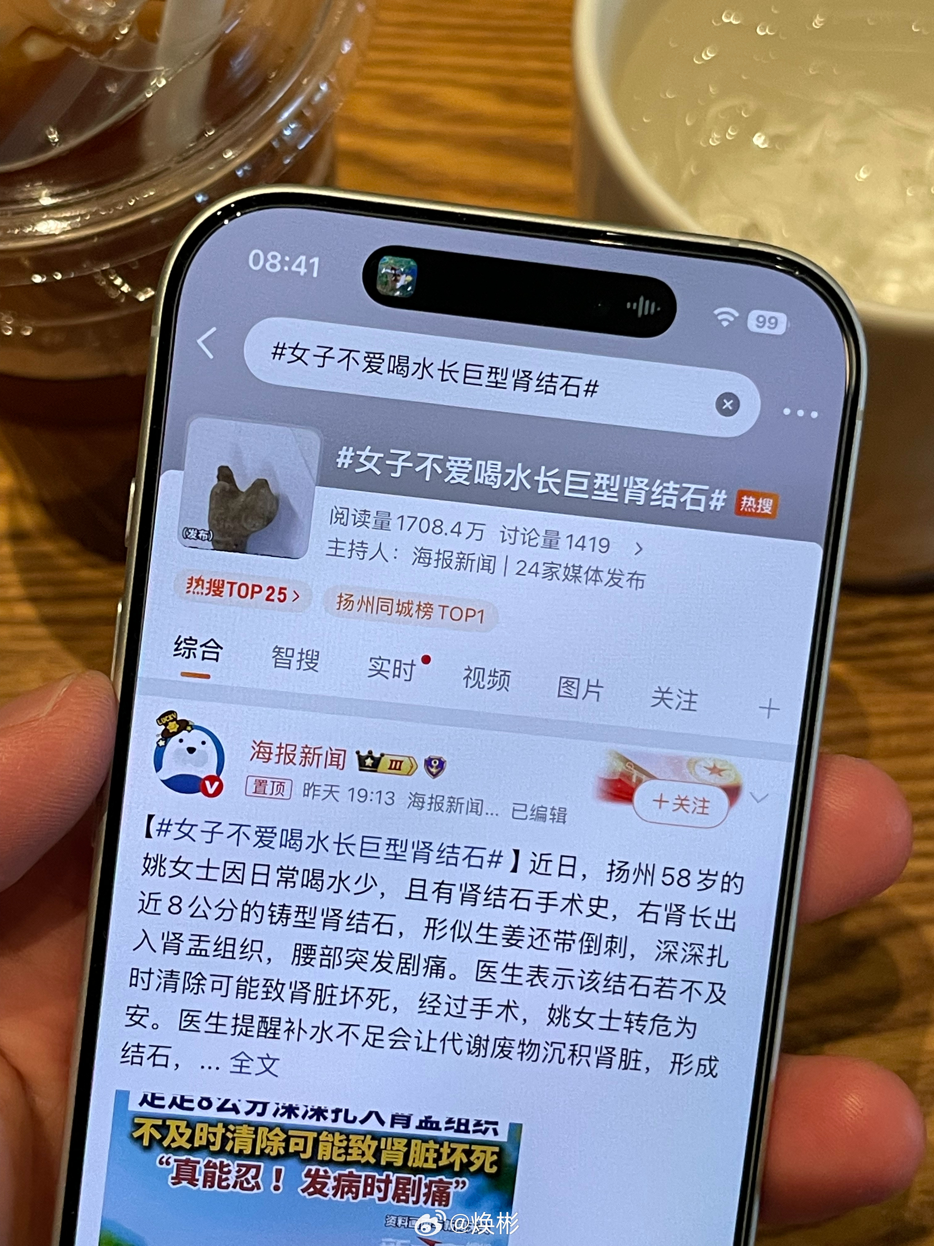家人们,还是要多喝水啊,咖啡和奶茶都不能当水喝,众所周知,大彬子每天都喝水女子不爱喝水长巨型肾结石