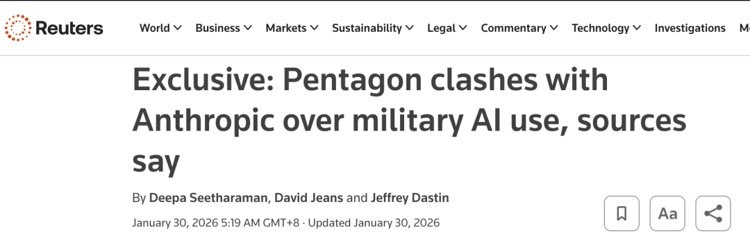例如,路透社去年一篇报道就提到:消息人士称Anthropic担心其工具可能被用于监视美国公民,或在缺乏人类监督的情况下用于武器攻击目标选择。
