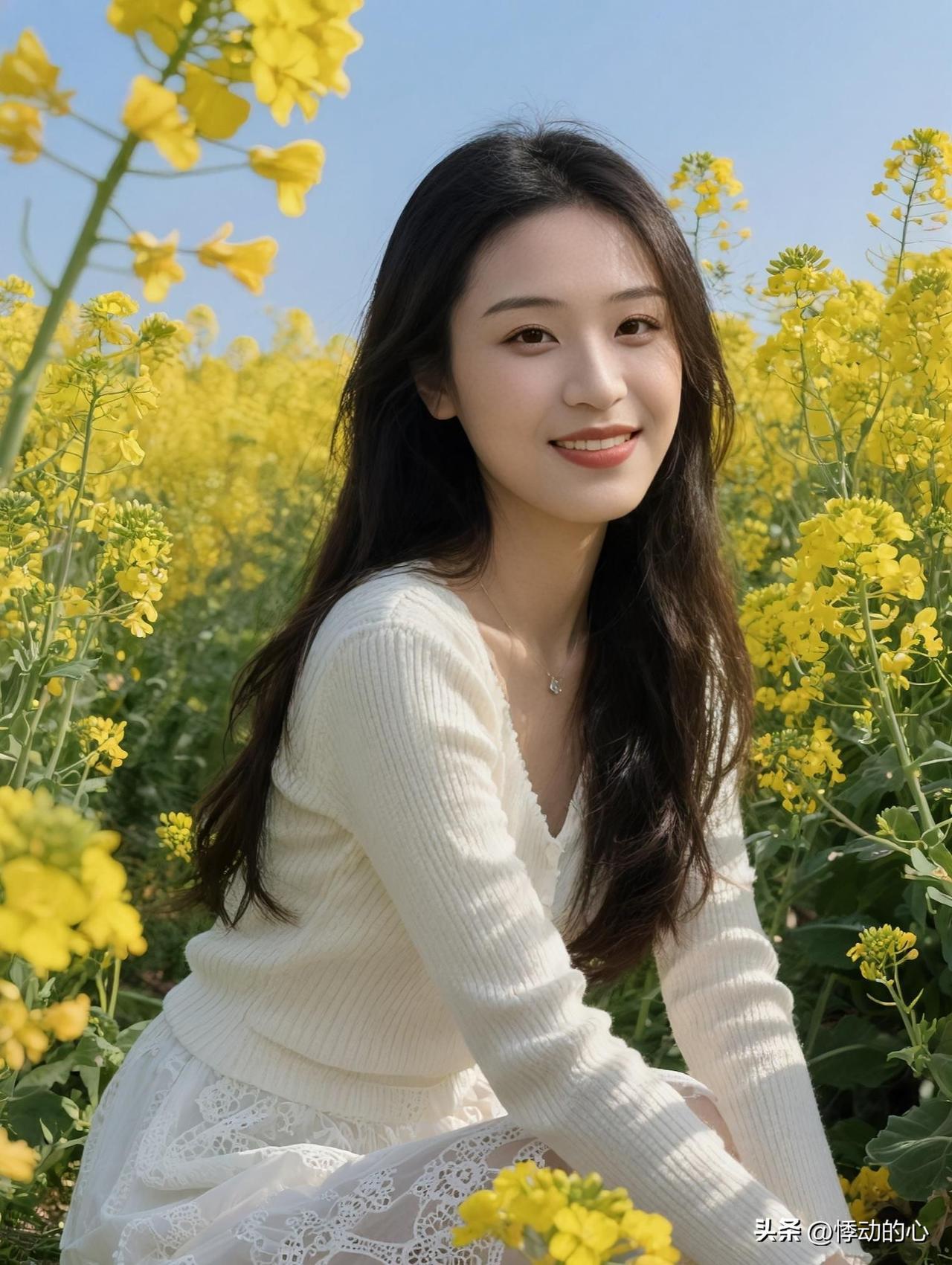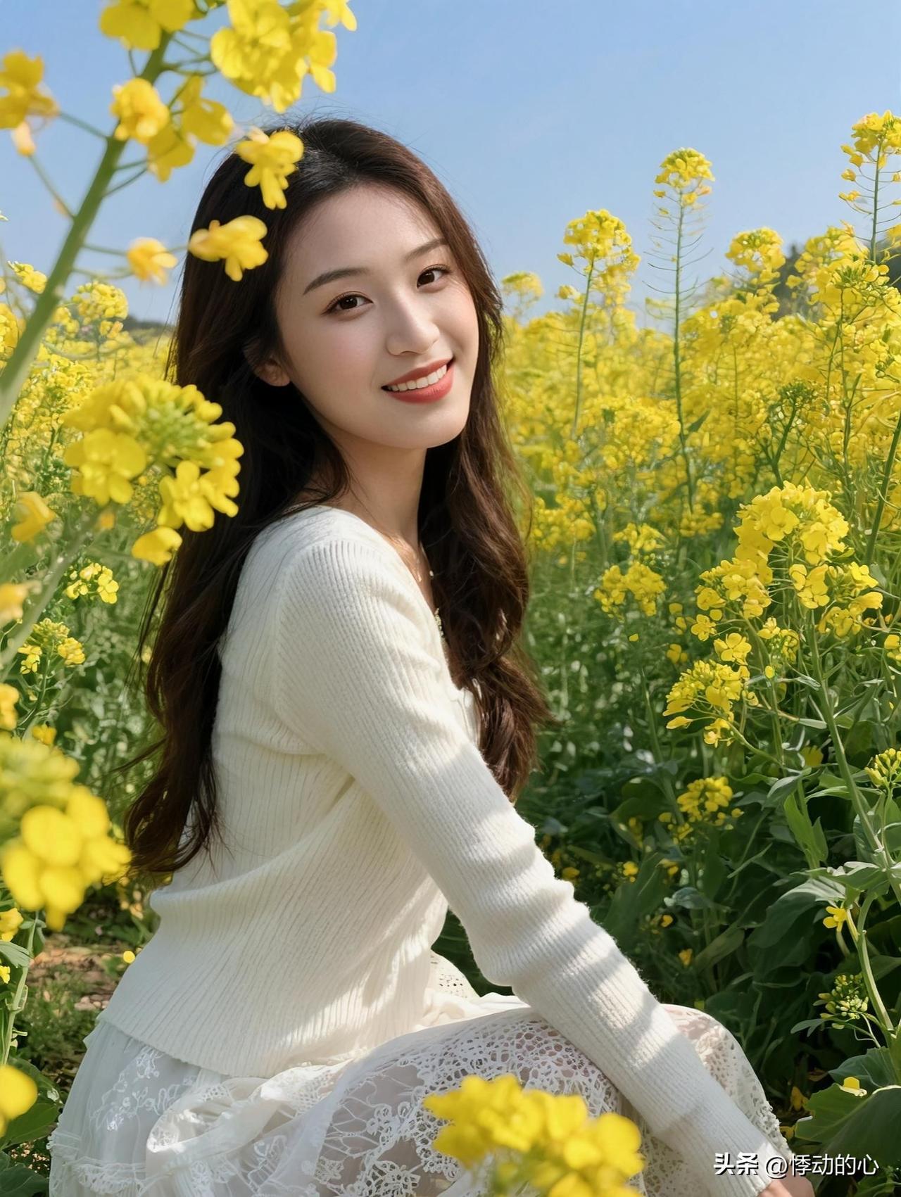 🌼 风过花田,你是落在人间的春日暖阳。 自然美女图片 治愈系风景美女 晴日铺