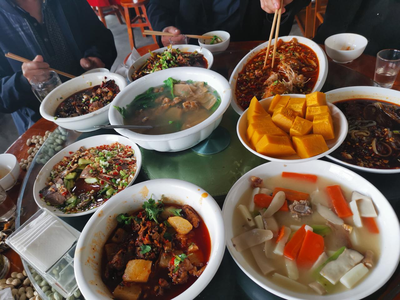 我们昨天这桌菜算下300元,晚上减去60元。 要放在城里一般上点挡次的馆子,一斤多鲤鱼至少行80,一盘凉粉25,一个滑肉汤50,红烧牛肉60,三鲜50。 起码算下来得800以上, 所以农家乐的菜称得上经济实惠,但农家乐少了房租和税收,和众多工人的工钱 所有菜品都是自家人在整。