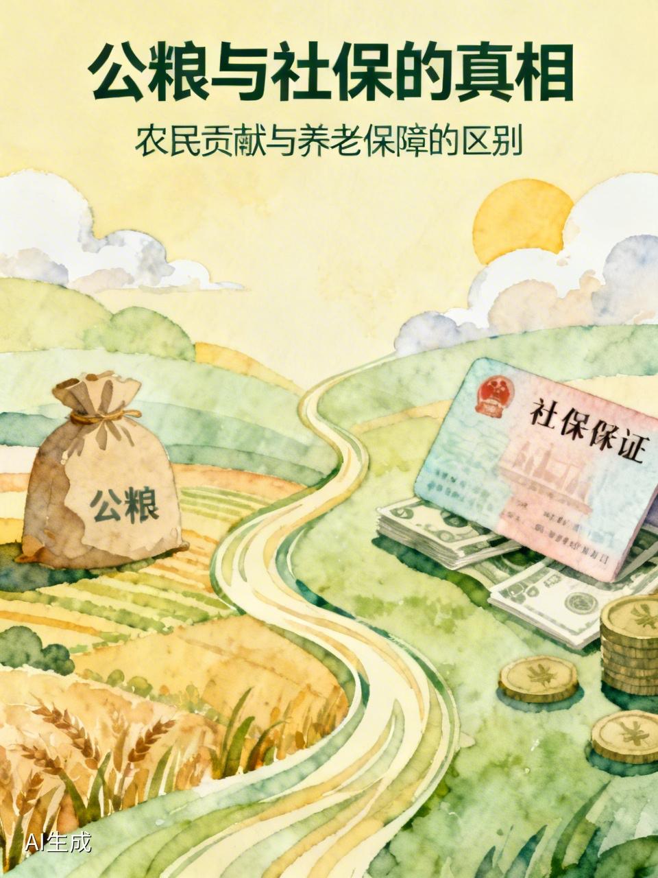 惊天误解!农民交的公粮,真的等于交了社保吗?今天终于真相大白! 家人们,今天要聊的这个话题,能戳中无数中国人的心!最近网上总有人说:“农民早年交的公粮,那就是相当于交了社保!”这句话听着暖心,但事实真的如此吗?今天咱们就把这层窗户纸彻底捅破,看完你就懂了! 很多老一辈农民一听“公粮抵社保”,心里乐开了花,觉得自己总算有养老保障了。可咱们得掰开揉碎了讲,“贡献”和“社保”,从来都不是一回事! 咱们先回忆当年交公粮的场景。那是上世纪50年代到2006年,农民交公粮是法定的义务,是无偿、无报酬的!那时候国家穷,工业基础薄弱,城市建设全靠农业积累。农民伯伯天不亮就起床,把自家地里最好的粮食挑出来,背着、扛着、拉着车去粮站排队。 验粮的标准严得很,水分超标不行,有杂质也不行,拉回去重晒、重筛是常事。那时候交公粮,是拿一家人的口粮去换国家的发展,很多农民为了完成任务,自己饿肚子也要把最好的粮交上去。这是历史贡献,是沉甸甸的付出! 而社保是什么? 是国家和社会依法建立的、为劳动者提供老年生活保障的制度。它有明确的缴费记录、个人账户积累,退休后能按月领养老金。 关键区别就在这儿: 1. 性质不同:交公粮是义务性的农业税,是为了国家运转;社保是社会保障制度,是为了个人养老。 2. 权益不同:交公粮没有建立个人账户,没有缴费凭证,也不能直接折算成现在的养老金。 3. 政策演变:2006年国家全面取消农业税,这是对农民的巨大减负,但这并不意味着公粮直接转换成了社保。 转折来了! 虽然公粮不等于社保,但国家从未忘记农民的贡献! 近年来,国家一直在通过新农合、城乡居民养老保险、种地补贴、高龄津贴等政策,实实在在地反哺农民。现在的农民,虽然没有像职工那样的“社保”,但也有了属于自己的养老保障体系,虽然水平还在提升中,但这是国家给农民的“定心丸”。 咱们必须承认,农民用公粮撑起了国家的工业化,为城市发展、为我们今天的好日子打下了坚实基础。这份历史功绩,值得每一个中国人铭记! 所以,咱们要理性看待这个问题。承认公粮是巨大的历史贡献,不等于把它和社保画等号。而国家对农民的保障,也在不断完善和加强。 最后,希望咱们年轻人都能懂这个道理,尊重每一位农民的付出,也期待国家能出台更多利好农民的政策,让辛苦了一辈子的长辈们,晚年生活能更有保障、更幸福!