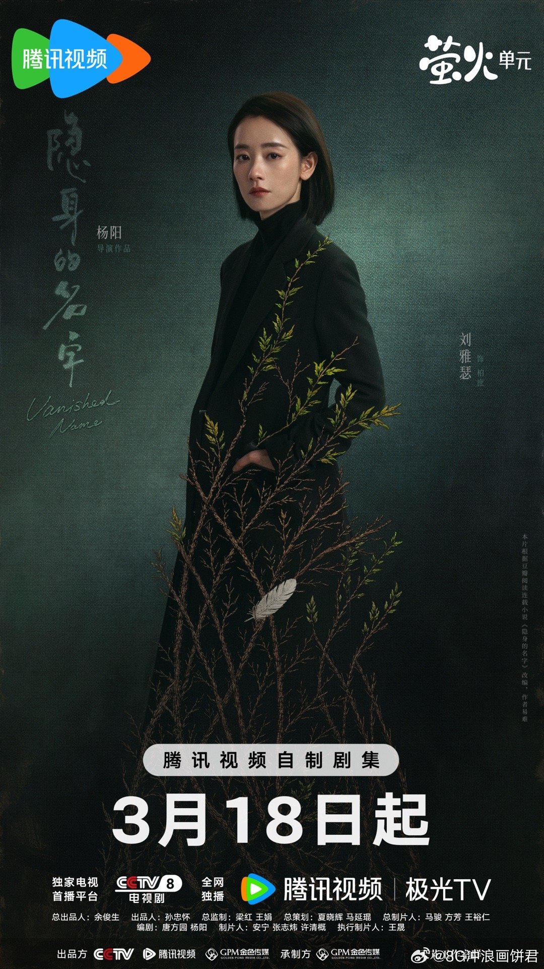 隐身的名字定档隐身的名字命运是一个圆,兜兜转转回到起点。那些被隐去的名字,那些没能说出口的话,终将在3月18日找到答案。CCTV-8、腾讯视频,每晚21:30。