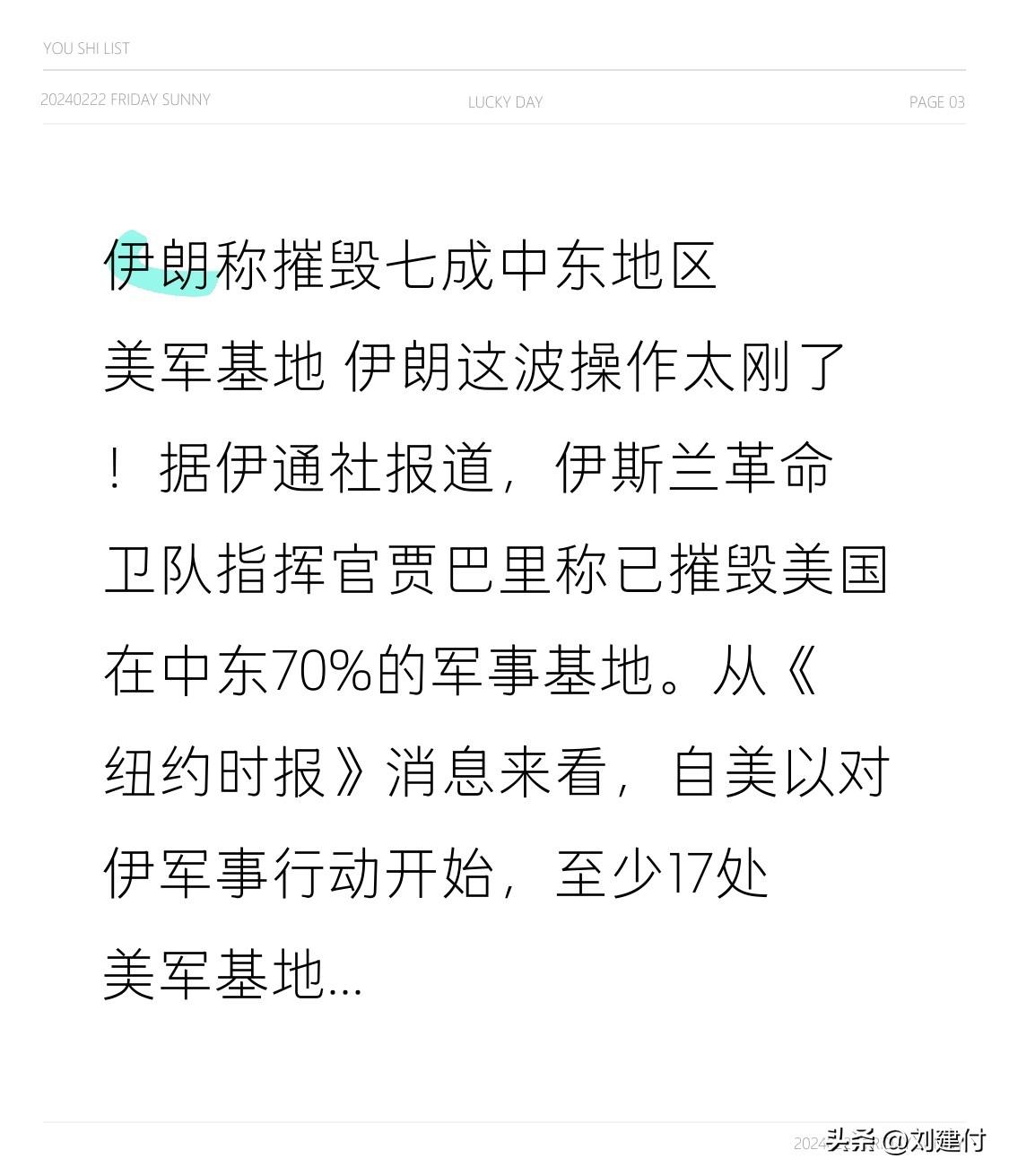 伊朗称摧毁七成中东地区美军基地 伊朗这波操作太刚了!据伊通社报道,伊斯兰革命卫队指挥官贾巴里称已摧毁美国在中东70%的军事基地。从《纽约时报》消息来看,自美以对伊军事行动开始,至少17处美军基地和设施受损,11个被击中,像沙特、科威特、卡塔尔的一些基地都在列。 美以对伊打击进入第13天,伊朗和黎巴嫩真主党联合行动。伊朗最高领袖穆杰塔巴誓言复仇,还说会采取封锁霍尔木兹海峡等战略。这局势越来越紧张,就看美方后续怎么回应了,感觉一场大戏还在后头。