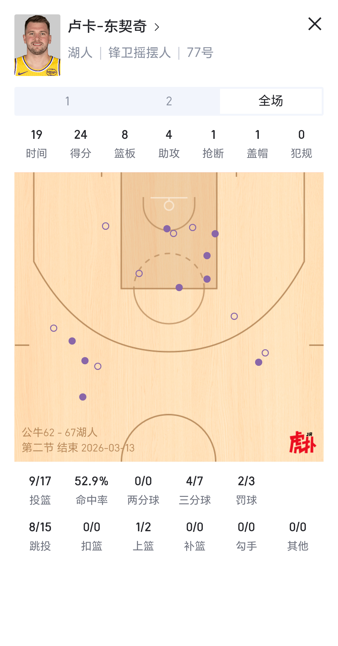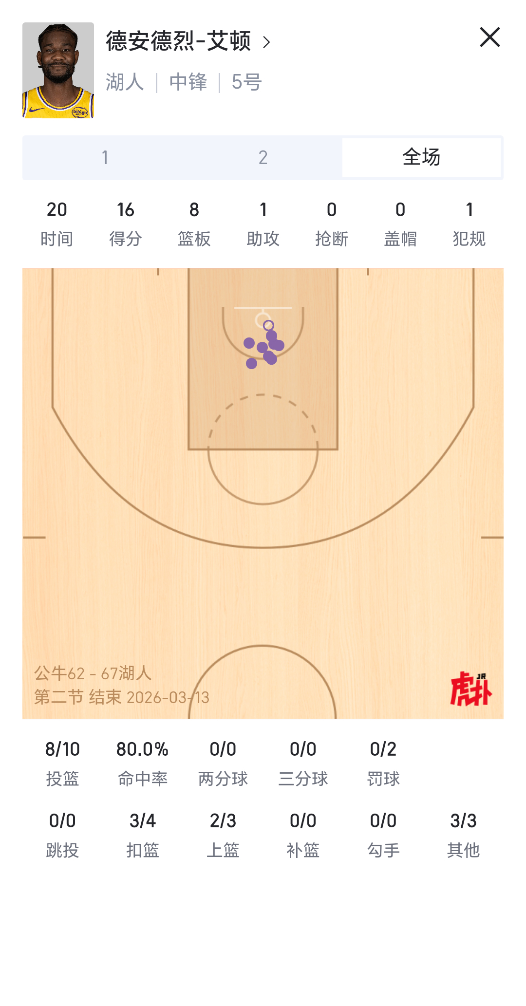 艾顿上半场打的像个战神湖人国度里夫斯东契奇詹姆斯公牛vs湖人