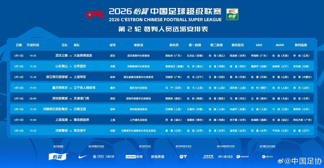 京鲁大战未开始,山东泰山败局已定! 3月13日,中超第2轮裁判名单公布,麦麦提江