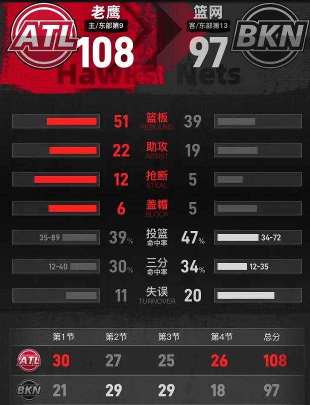 当你看着8连胜的球队被重建队逼到悬崖边,手里的爆米花突然就不香了。 老鹰这场胜利,吃得像隔夜的剩饭——赢了,却胃疼。约翰逊21+9+9的数据单亮得晃眼,可前三节他在场上飘得跟幽灵似的,传球软得像在扔棉花。直到第四节,这哥们突然像被人扇了个耳光,攻防两端瞬间换了芯,那种迟到的觉醒让人又欣慰又窝火——早干嘛去了? 更荒诞的是篮板。让篮网这种摆烂大队抢了14个前场板,二次进攻被爆得找不着北,克拉克斯顿在你禁区里游泳,奥孔古的护框像纸糊的。这不是态度问题,是专注力的集体断电,领先19分到只剩1分,斯奈德在场边那张铁青的脸,写满了"我受够了"四个大字。 骂完得说句公道话。沃克从板凳杀出来那18分,个个像匕首扎在篮网心口上。当首发在梦游,是这个替补用最原始的得分欲望在续命。这种X因素的爆发,比任何战术配合都来得真实。 别急着喊"附加赛不稳了"这种丧气话。特雷-杨不在,约翰逊在学习怎么当真正的持球核心——这种挣扎是必须的。8连胜期间净是打奇才、篮网这种福利赛程,现在暴露问题总比季后赛暴露强。 丑陋的胜利也是胜利。它撕开了"连胜滤镜",让我们看清这支年轻球队离真正的强队还差最后一口气——那口气叫"持续专注"。约翰逊21+9+9里萨谢19分 老鹰击败篮网8连胜