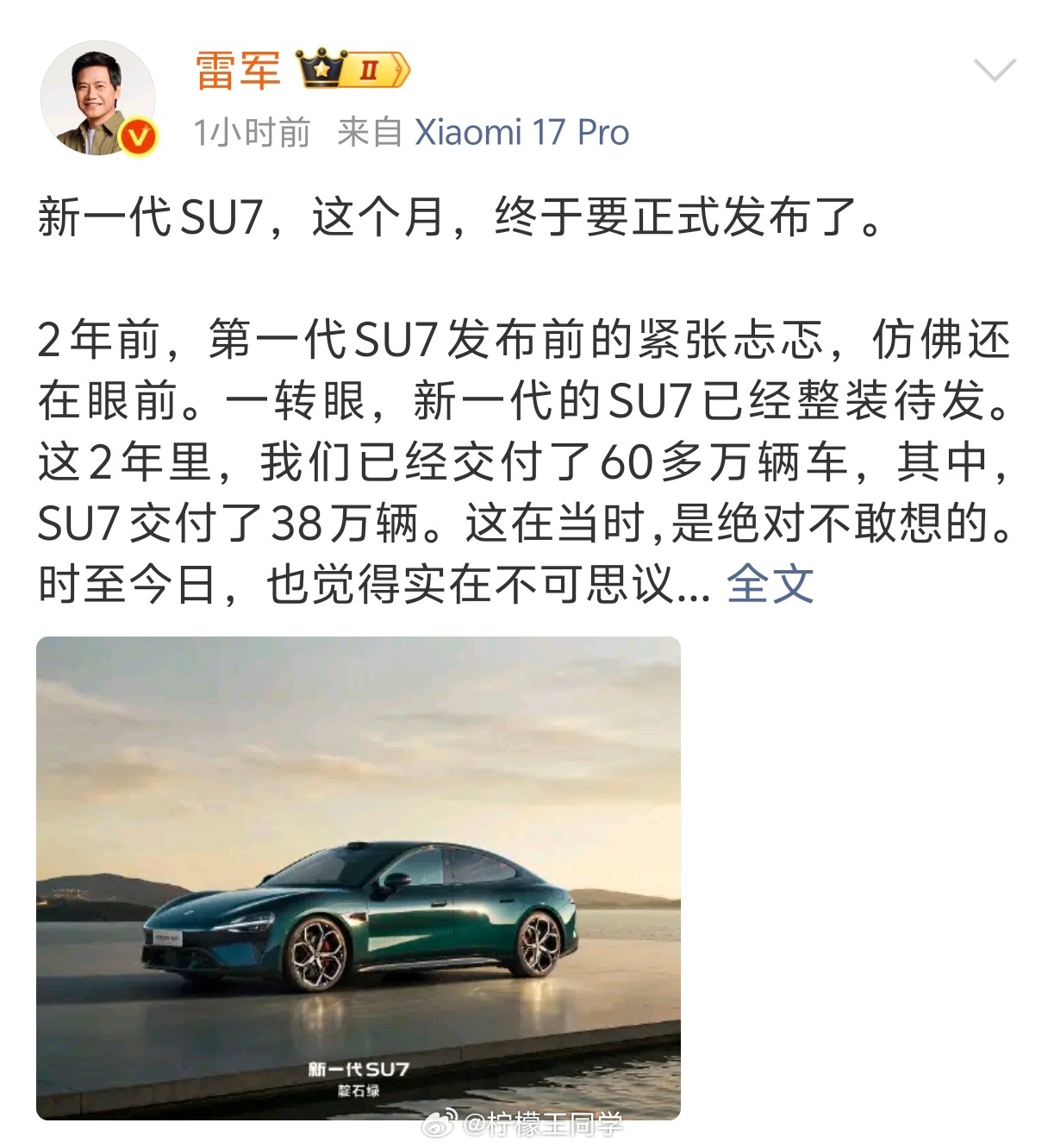 不知道大家有没有看这几天媒体发的试驾新一代小米SU7的感受,真的期待值拉满了,据雷总说,这次涨价是板上钉钉的事了雷军表示新一代SU7确定涨价