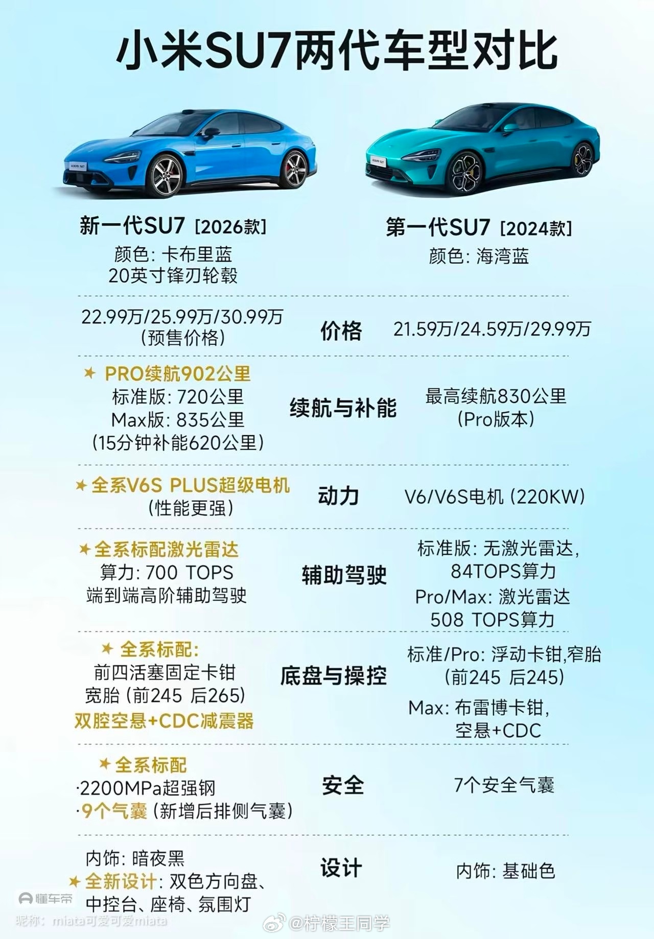 但是看配置单如果只涨1-1.4W,那依旧非常香,算算新增的配置单:全系标配9个安全气囊、2200Mpa超强钢、800V高压平台、V6s Plus超级电机、激光雷达+700TOPS算力芯片……光是这些硬件成本,价值就远超涨幅。更别说Pro/Max版还标配了双腔空悬+CDC