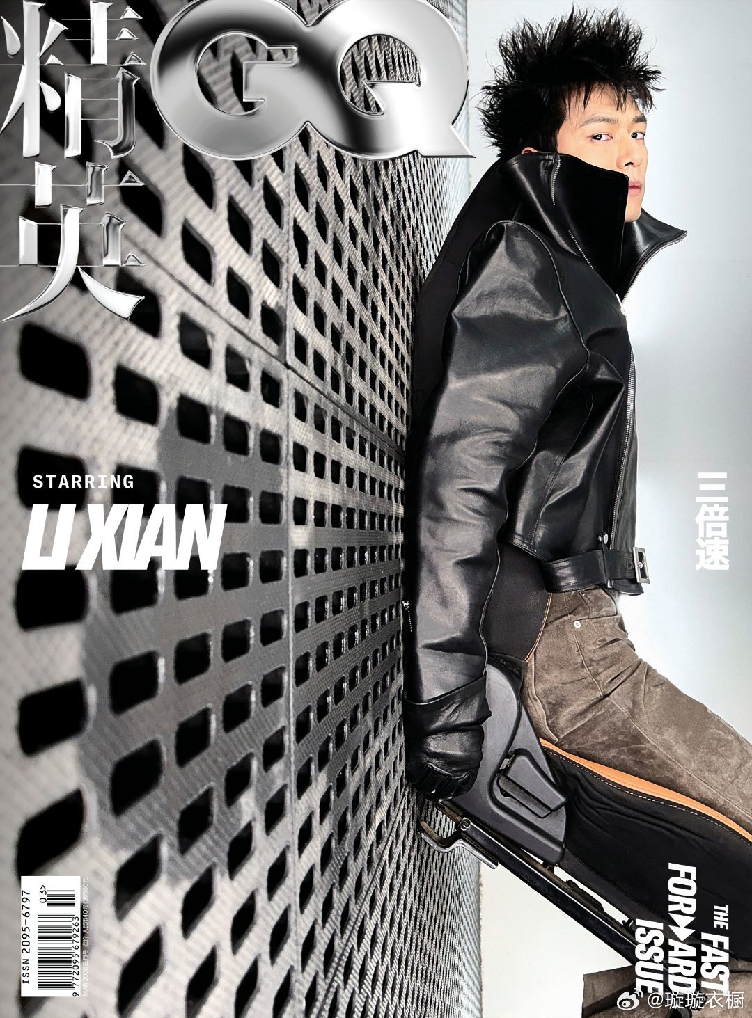 皮衣棱角撞碎光影网格️,金属质感在镜头前野蛮生长。双臂舒展如鹰击长空,皮革褶皱里藏着春日锋芒。GQ三月李现封面