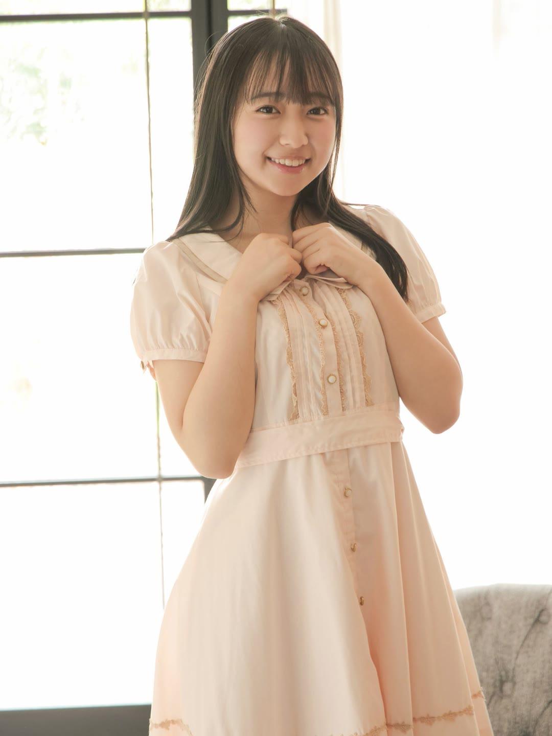 阳光洒进来的午后,少女微笑着站在窗边,温柔而美好。甜妹