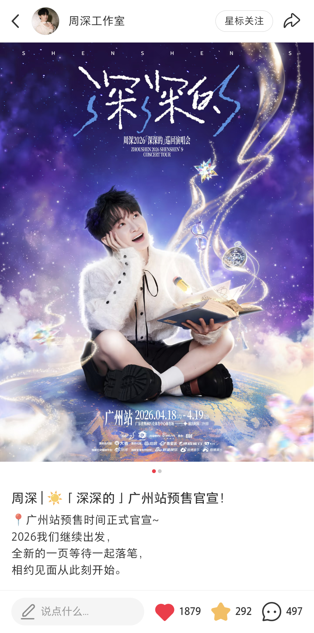 【周深工作室】小📕书更新啦官宣了广州站,米子们快来三连互动