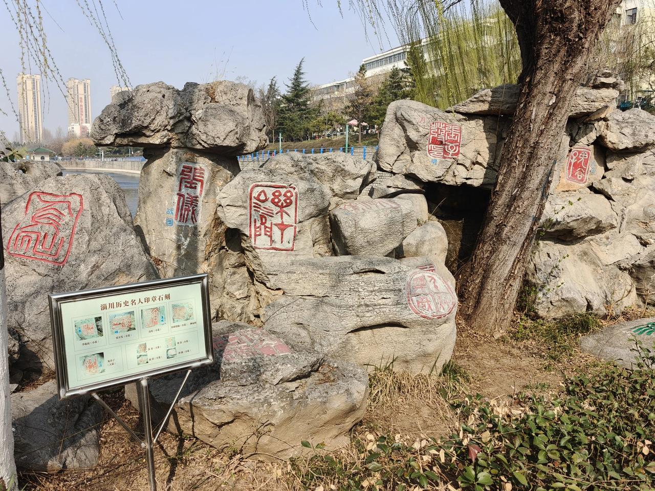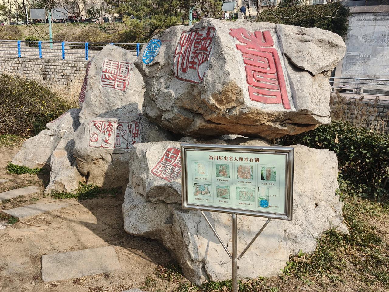 淄川这里有个般阳金石园,你知道在哪里吗? 般阳金石园位于淄博市淄川区体育公园般河以北的湖心岛上,由淄川篆刻爱好者在30多块石头上,以淄川历史名人印章为题材,通过精心设计,细致雕刻,展现了传统文化的魅力,成为市民了解淄川深厚文化底蕴的窗口。